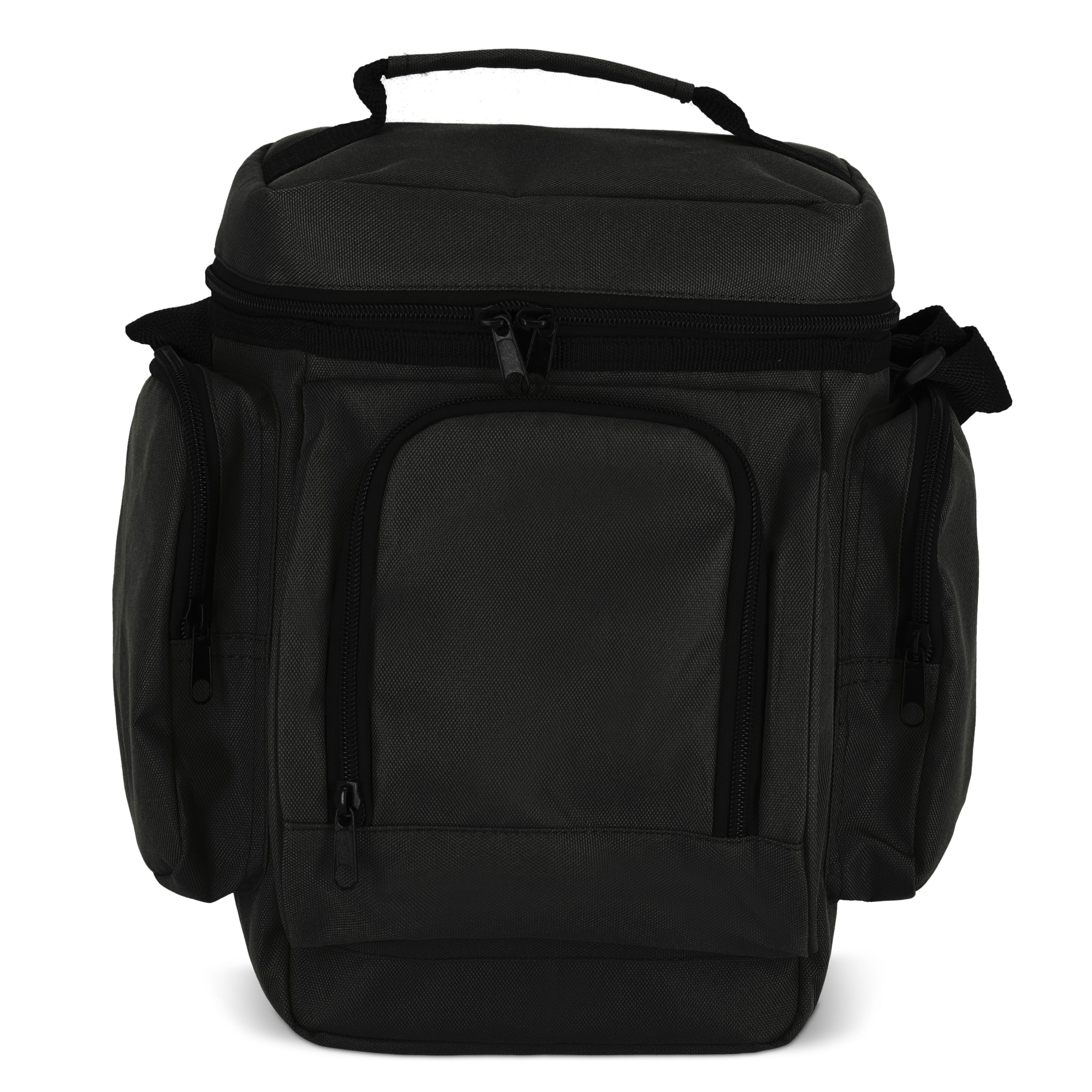 Diese Lunch-Kühltasche ist aus recyceltem PET in strapazierfähigem 600D-Material gefertigt und hat ein PEVA-Futter zur Isolierung. Sie hat zwei Seitentaschen mit Reißverschluss und eine Fronttasche mit Reißverschluss für zusätzlichen Stauraum. Der verstellbare Schultergurt und der obere Tragegriff erleichtern das Tragen.