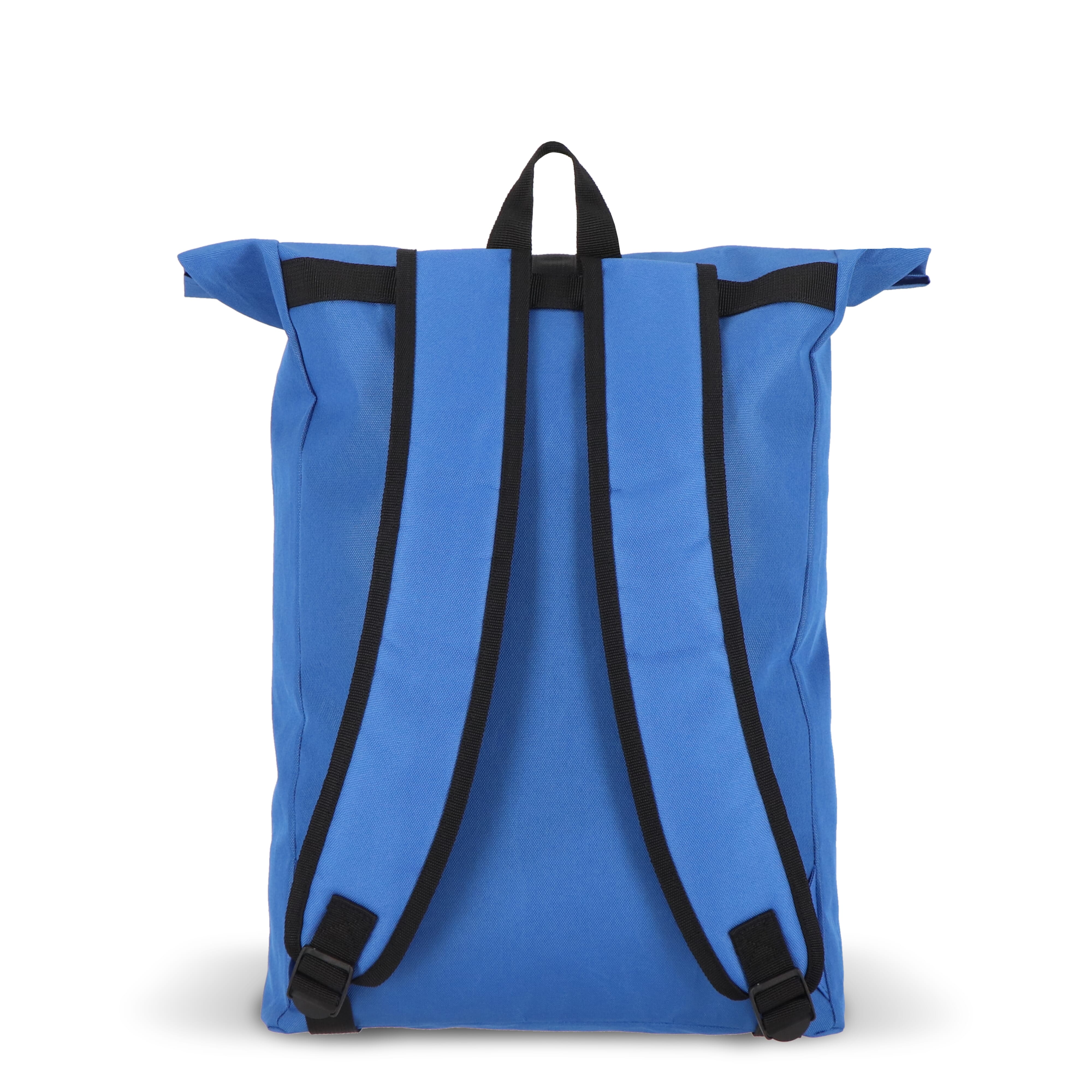 Dieser praktische Rucksack im trendigen Rolltop-Design ist aus recyceltem PET gefertigt. Er verfügt über verstellbare, gepolsterte Schultergurte, einen Griff an der Oberseite und eine Reißverschlusstasche auf der Vorderseite, die sich ideal für kleinere Utensilien eignet.