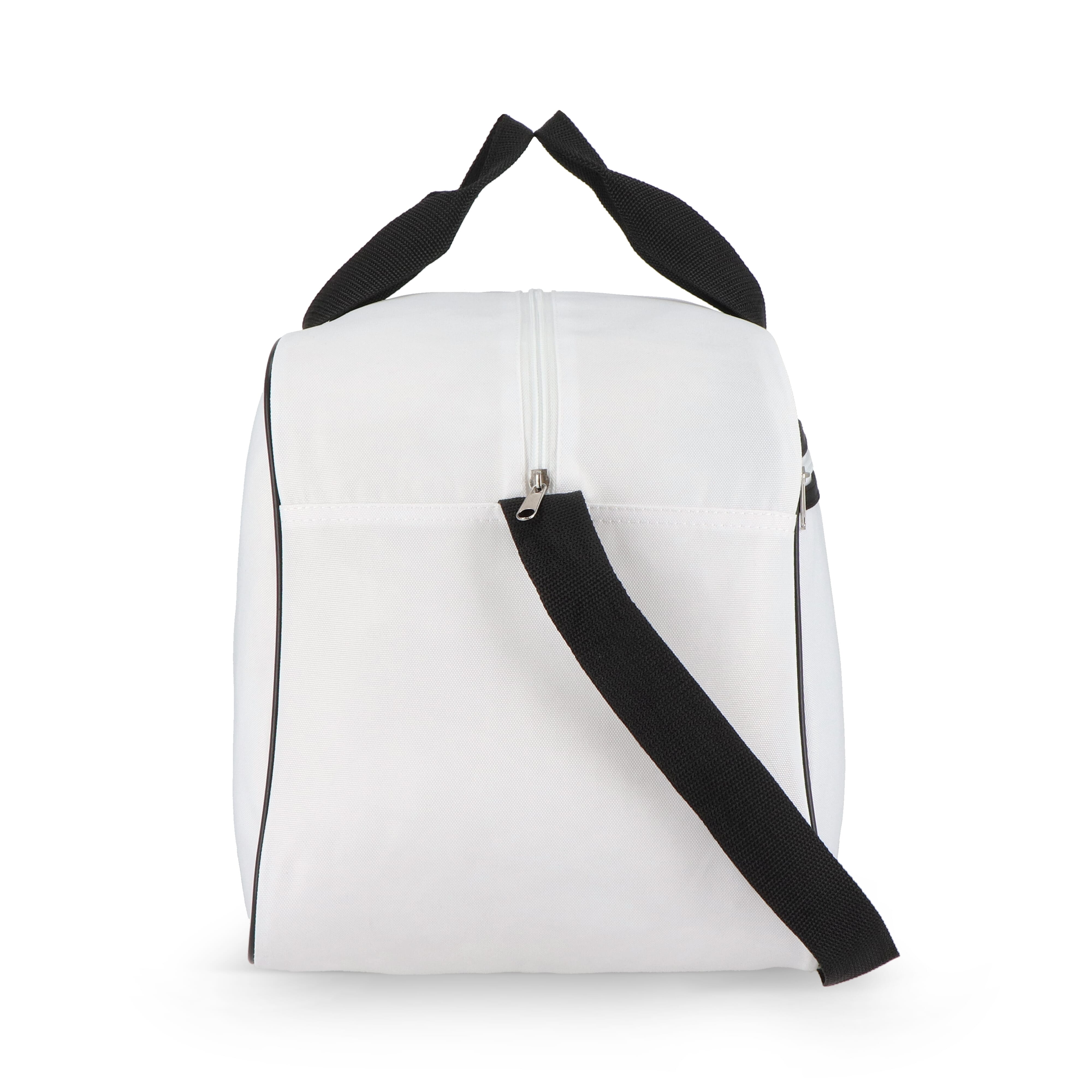Beliebte Reise- und Sporttasche aus strapazierfähigem 600D recyceltem PET. Ausgestattet mit einem Frontfach mit Reißverschluss, Tragegriffen und einem verstellbaren Schultergurt für bequemen Transport.