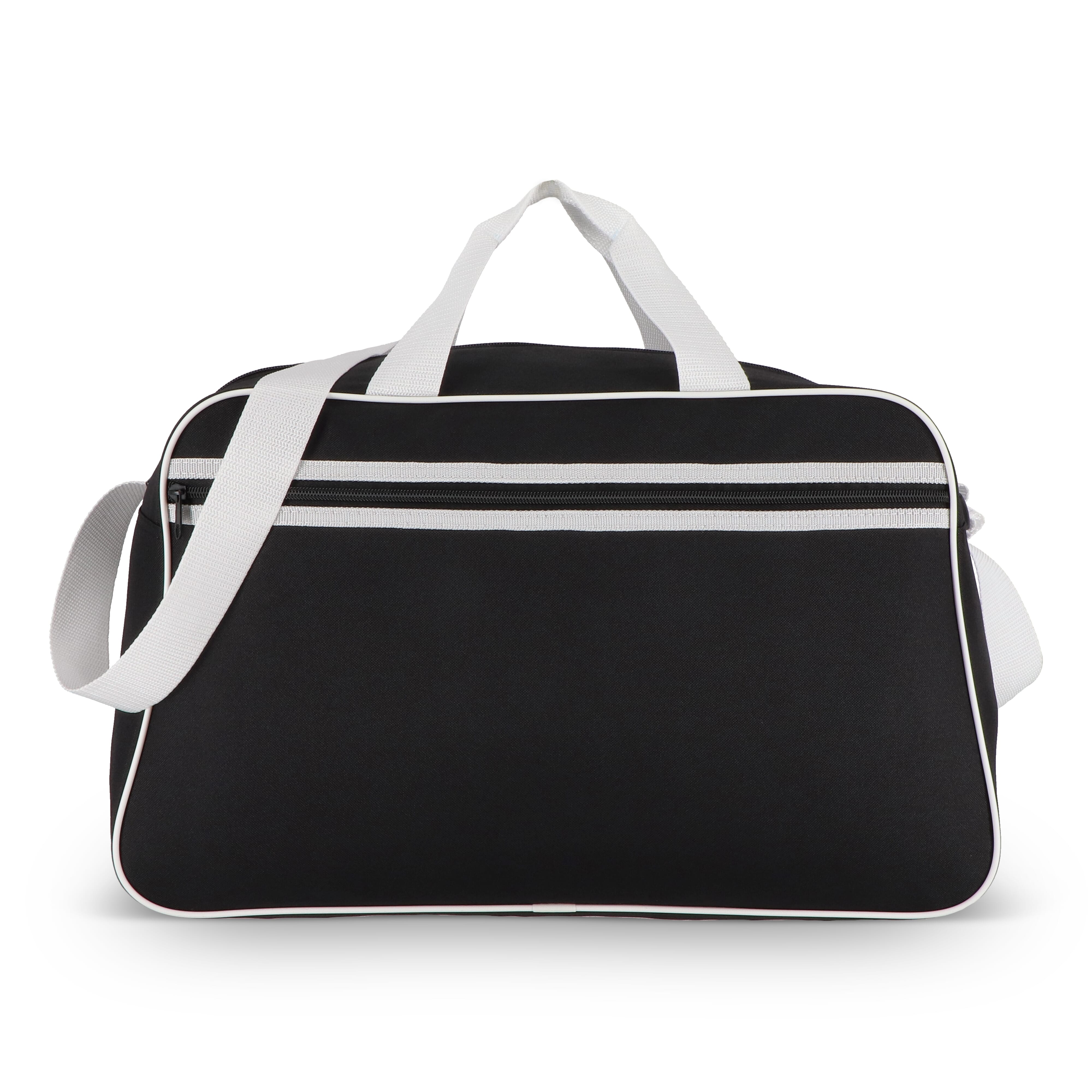 Beliebte Reise- und Sporttasche aus strapazierfähigem 600D recyceltem PET. Ausgestattet mit einem Frontfach mit Reißverschluss, Tragegriffen und einem verstellbaren Schultergurt für bequemen Transport.