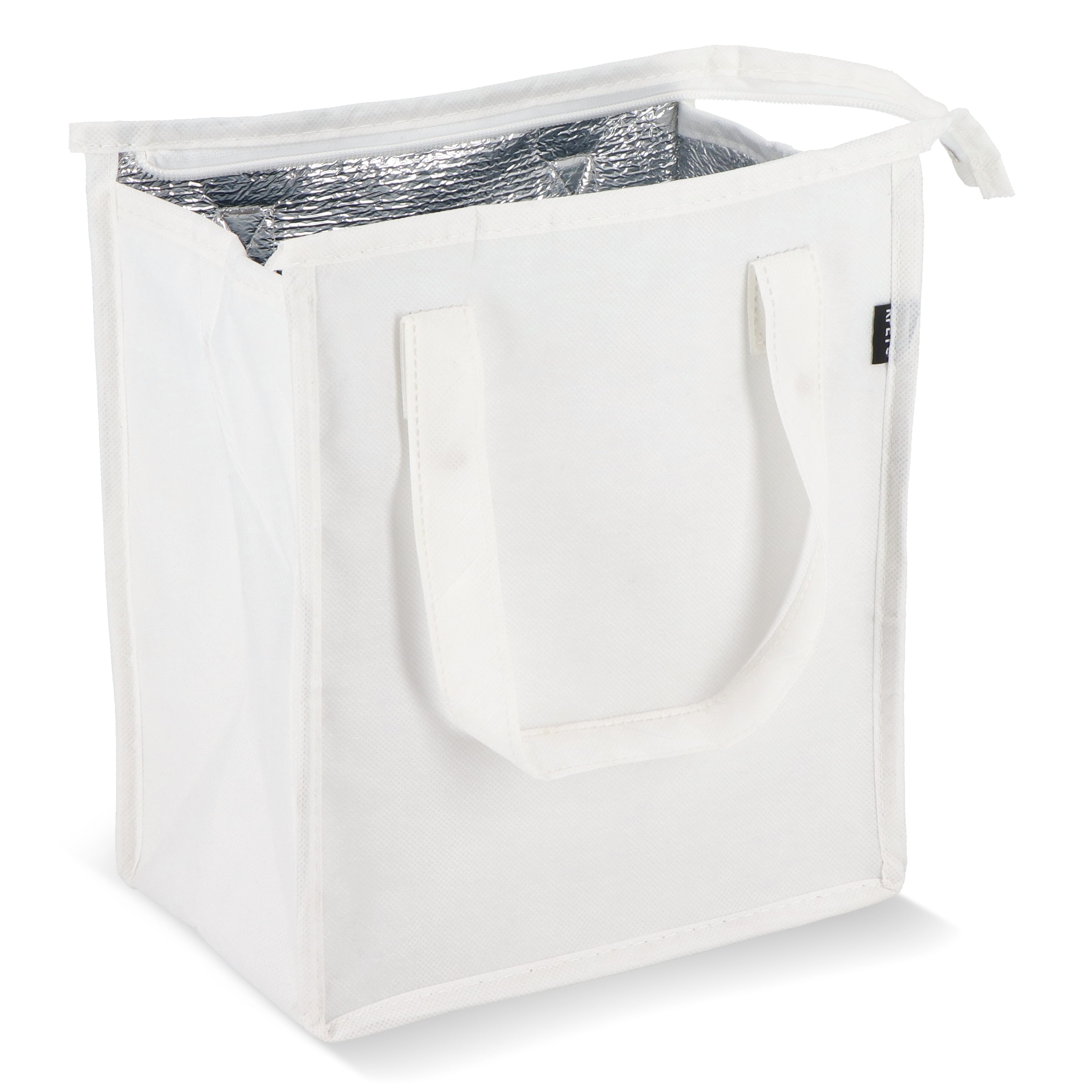 Lunch-Kühltasche aus recyceltem PET-Non Woven (75 g / m²) mit Alufolienfutter. Kompakt und praktisch.