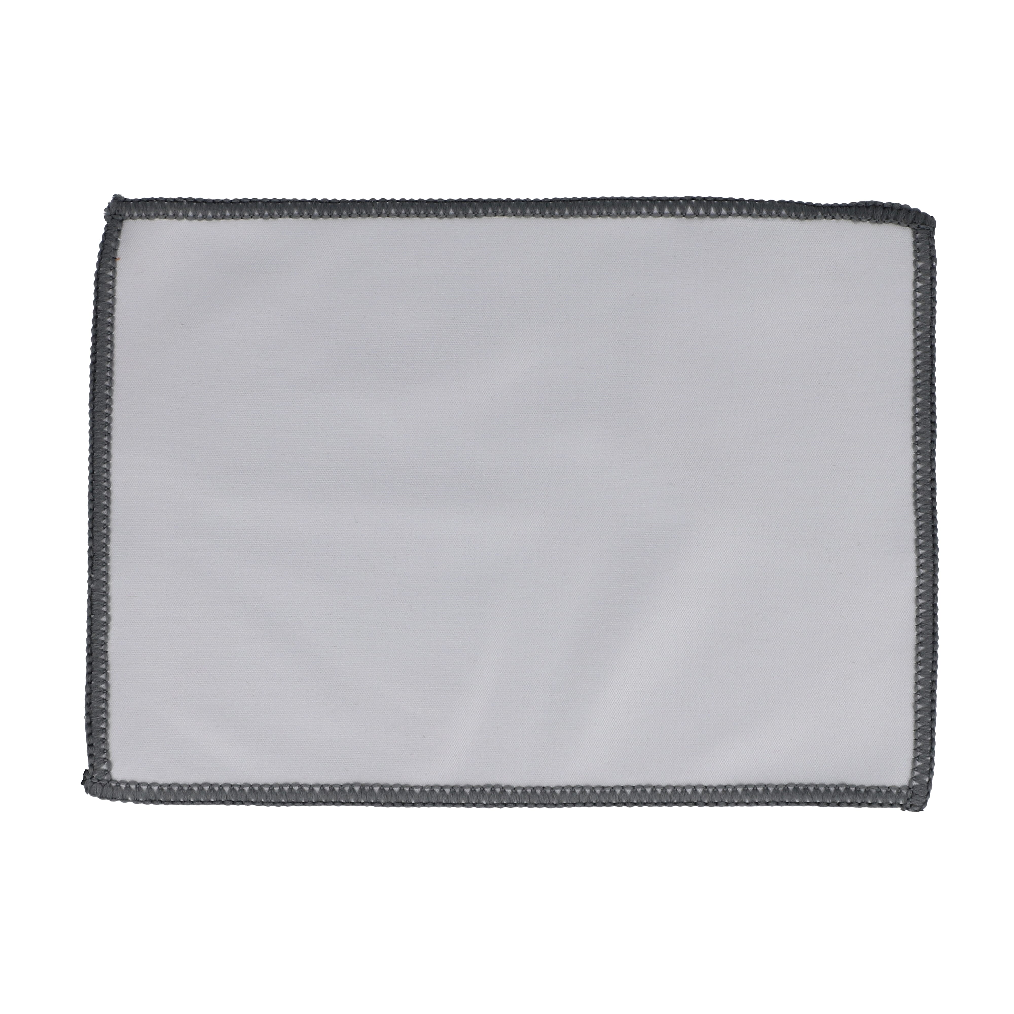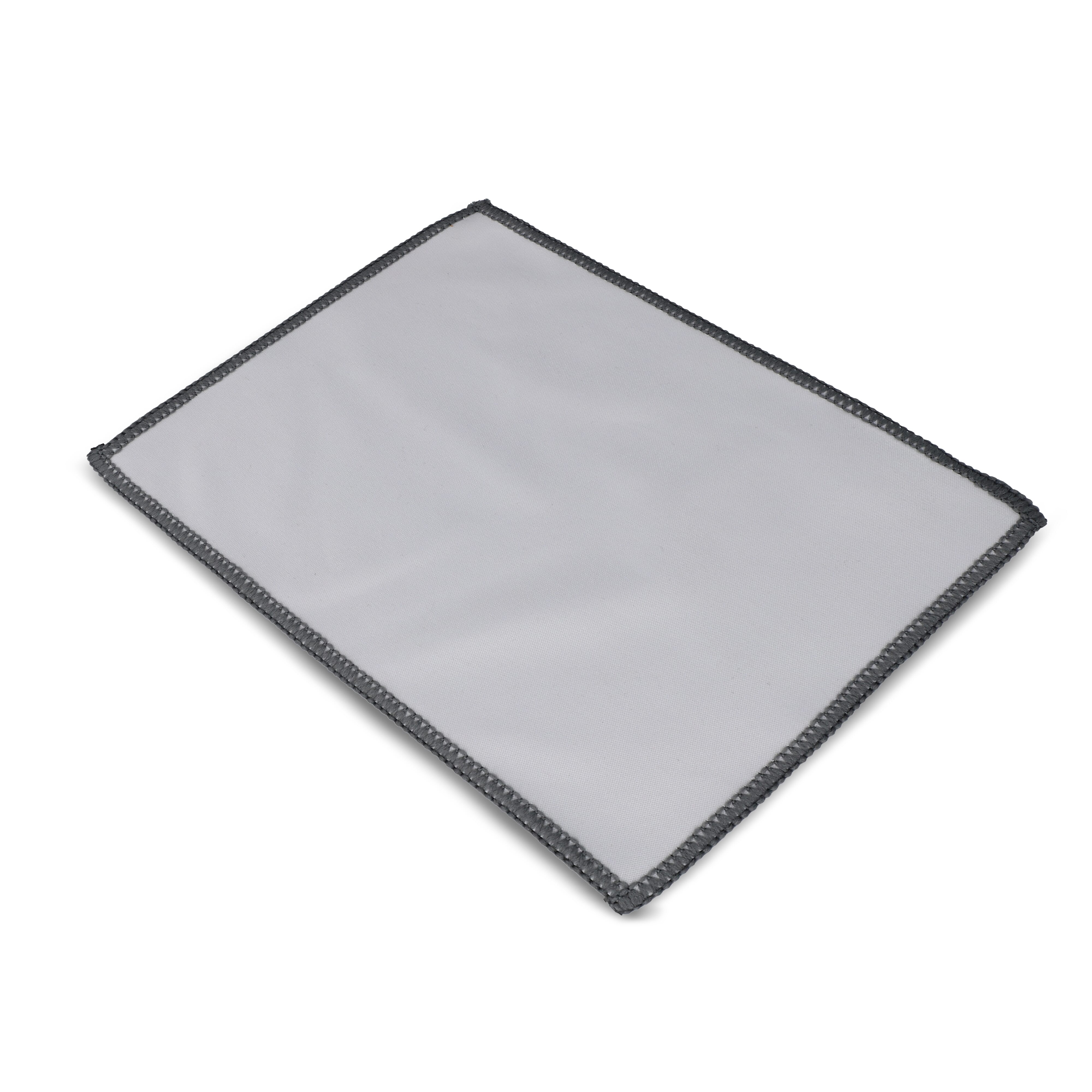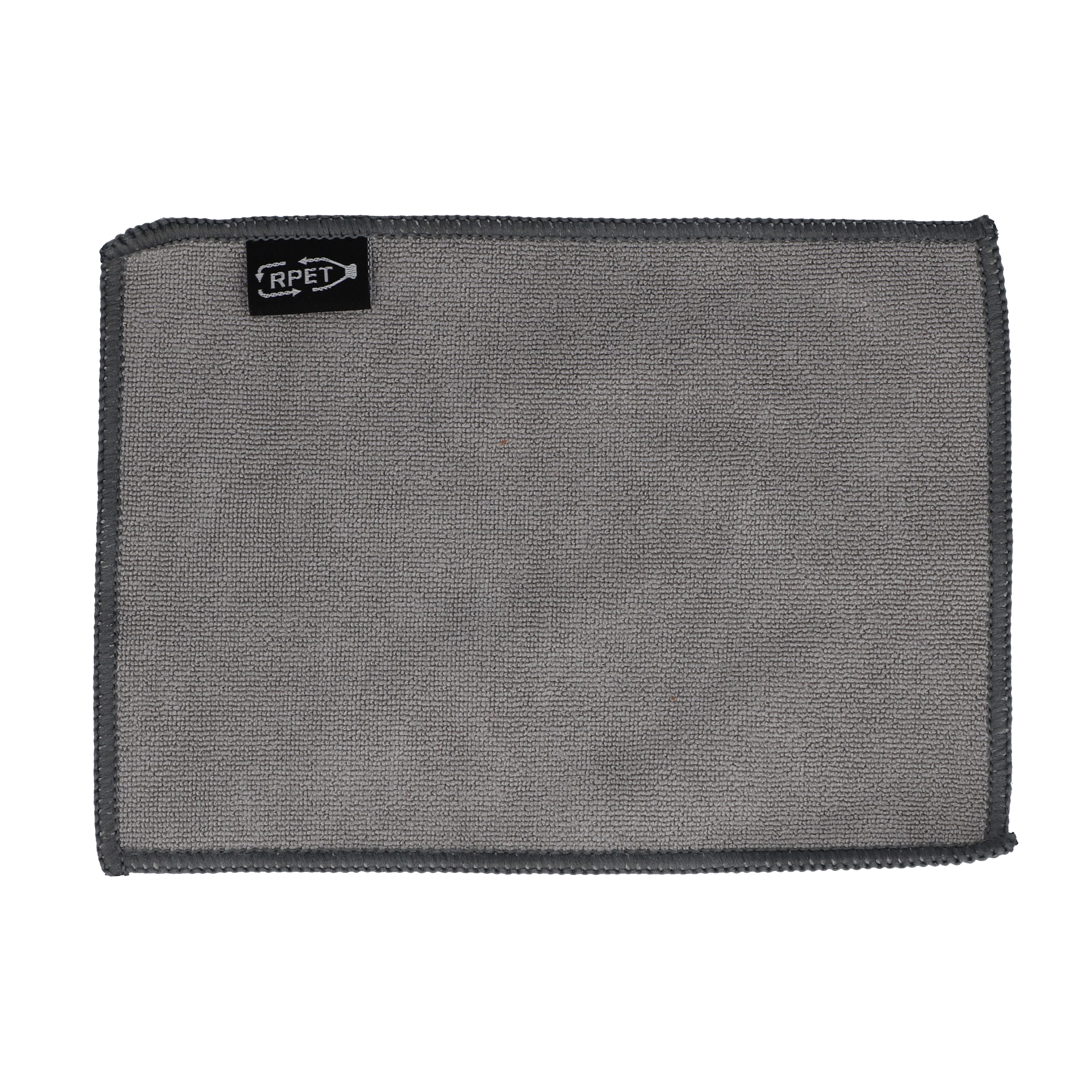 Ein Reinigungstuch für Bildschirme und Brillen aus 400g / m² 100% recyceltem PET. Eine Seite ist ein glattes, flach gewebtes Mikrofasertuch und die andere Seite ist ein Frotteetuch, um mehrere Reinigungsmöglichkeiten zu bieten. Bedrucken Sie dieses Produkt mit einem vollfarbigen Sublimationsdesign.