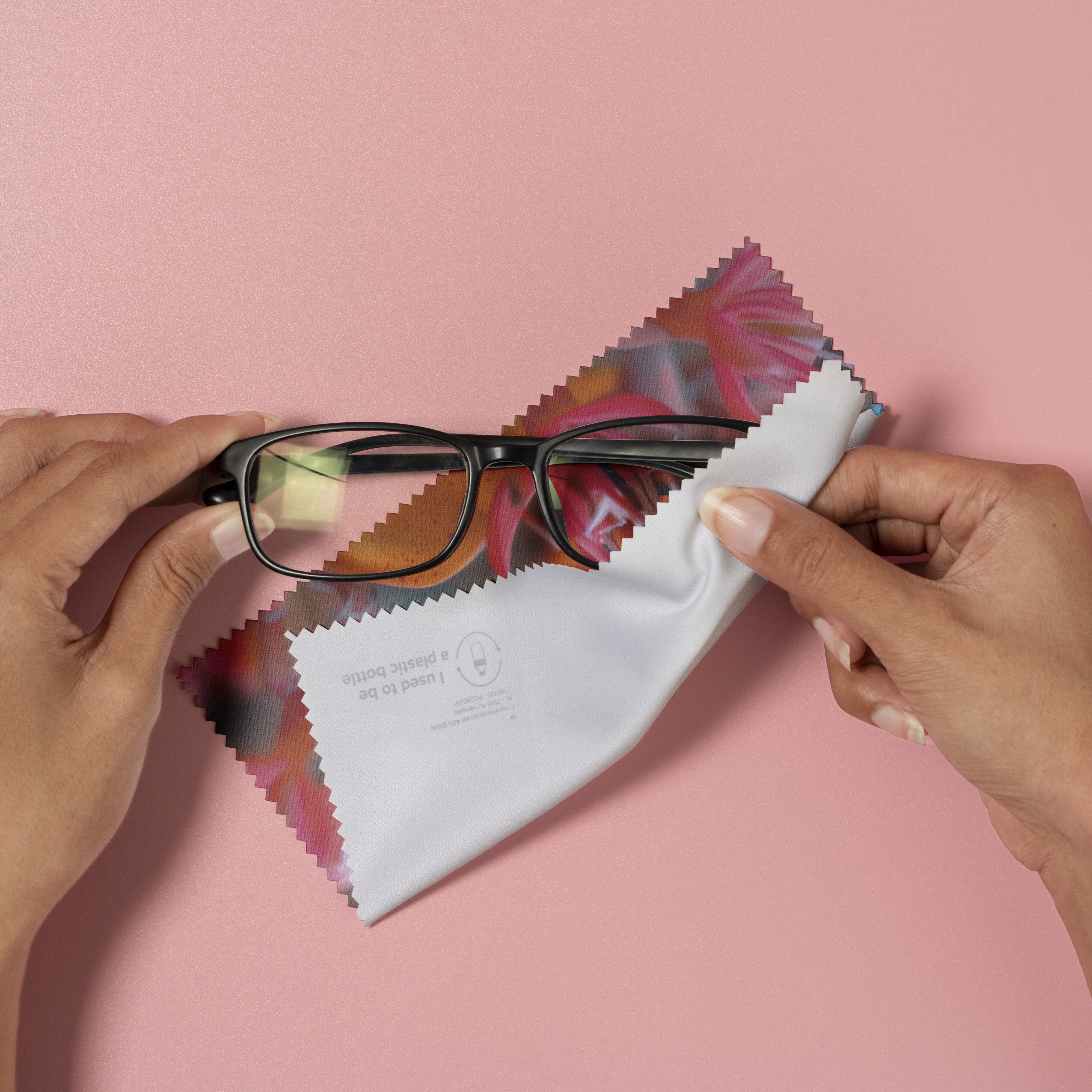 170g / m² 100% recyceltes PET-Mikrofasertuch für Bildschirme oder Brillen. Nutzen Sie dieses Produkt, indem Sie ein vollfarbiges Sublimationsdesign hinzufügen. Um die Umwelt zu schonen, ist dieser Artikel lose verpackt und nicht in einzelnen Polybeuteln.