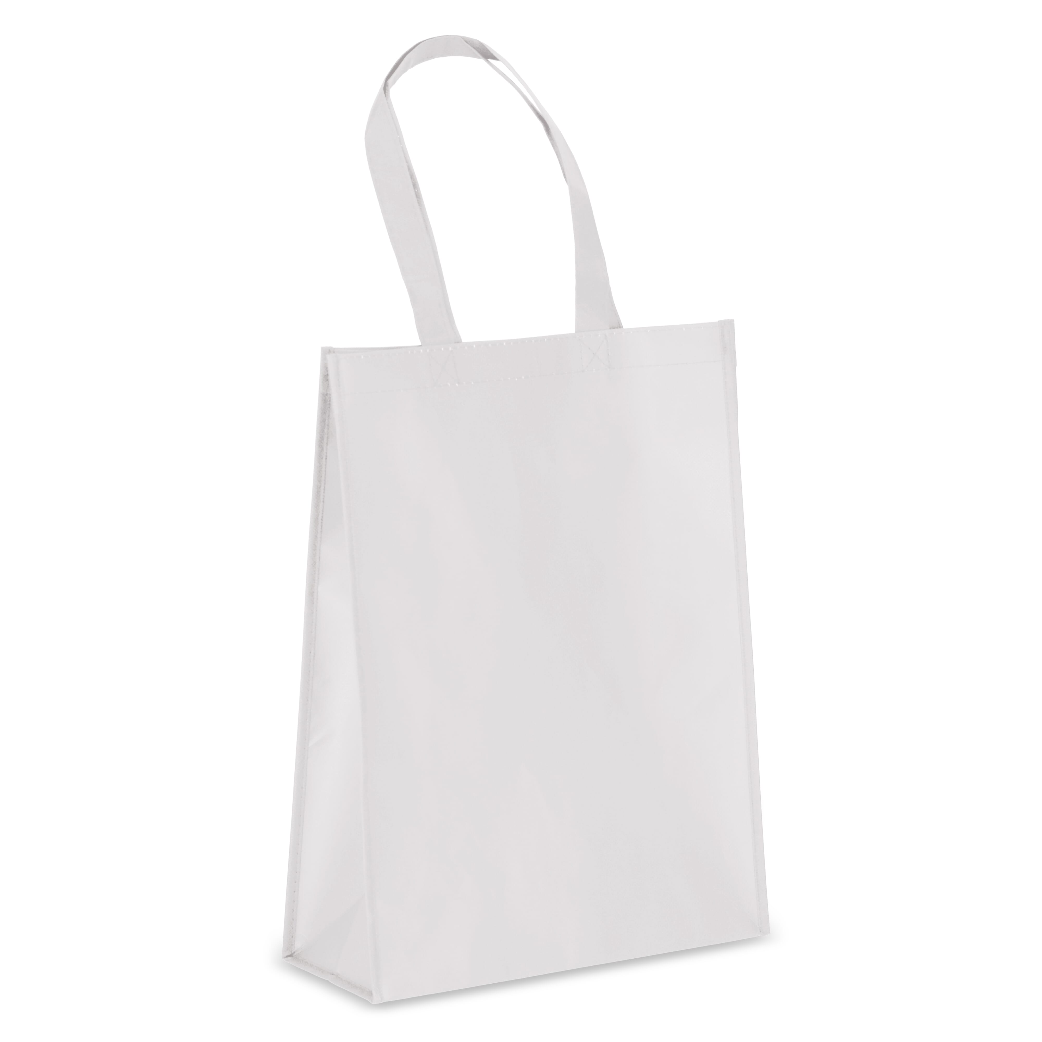 Tragetasche aus 70% recyceltem, laminiertem Non Woven. Mit robusten, genähten Griffen und einem geräumigen Innenraum, perfekt für den täglichen Gebrauch. Die nachhaltige Alternative zu laminierten Non Woven Taschen