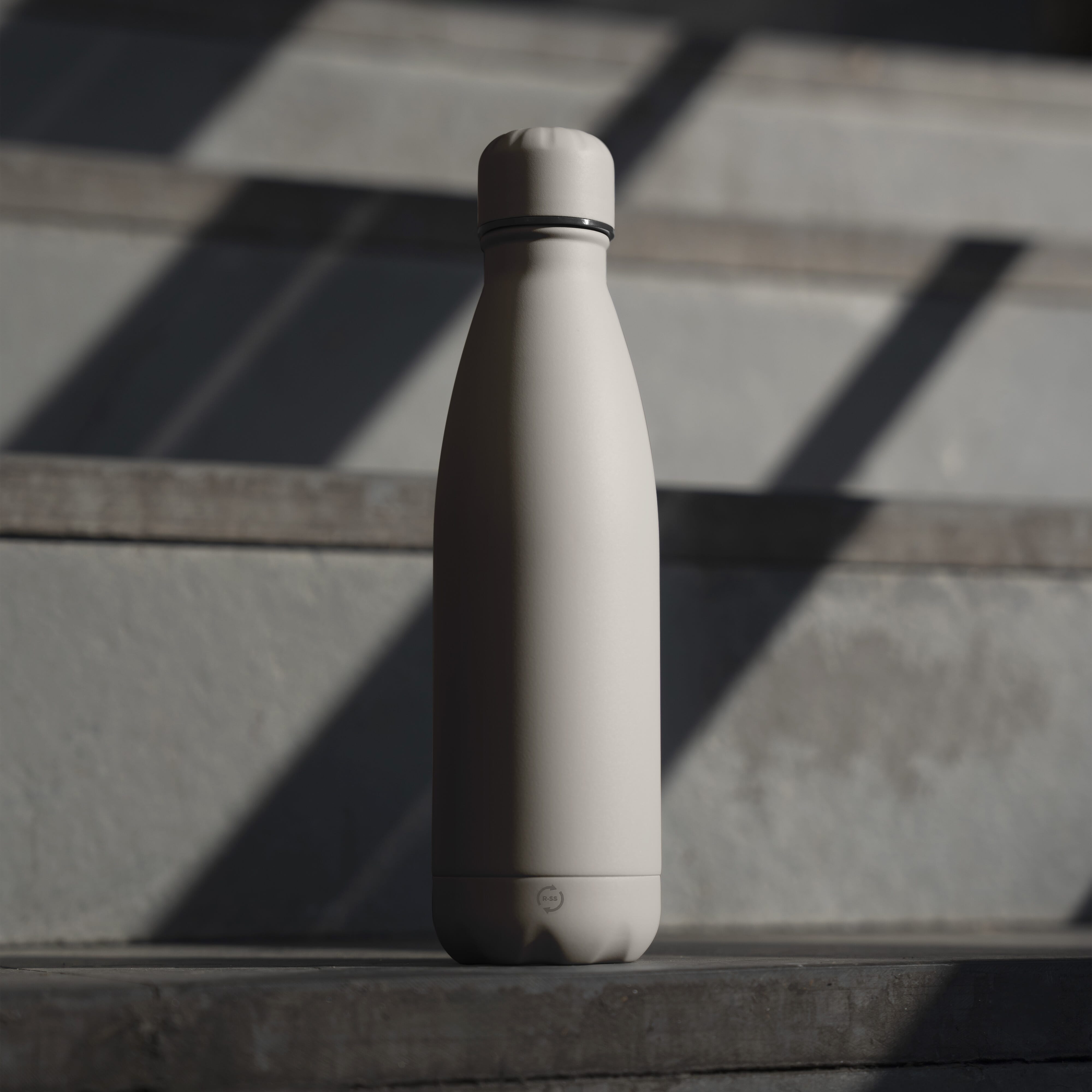 Unsere beliebte Swing-Flasche ist jetzt aus recyceltem Edelstahl und mit einer samtweichen Soft-touch Oberfläche erhältlich. Die doppelwandige, vakuumisolierte Flasche hält Getränke über einen längeren Zeitraum kalt oder warm und ist auslaufsicher für den Gebrauch unterwegs.