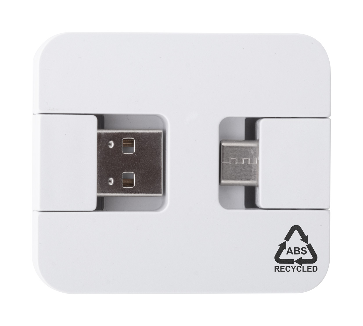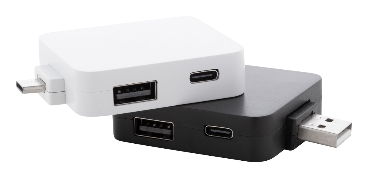USB-Hub aus recyceltem ABS-Kunststoff mit 2 USB- und 2 USB-C-Anschlüssen. Mit faltbaren USB- und USB-C-Anschlüssen. USB 2.0.