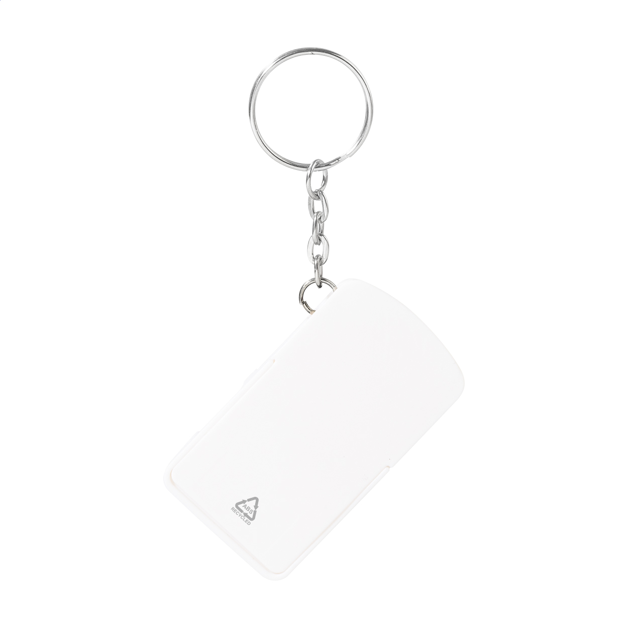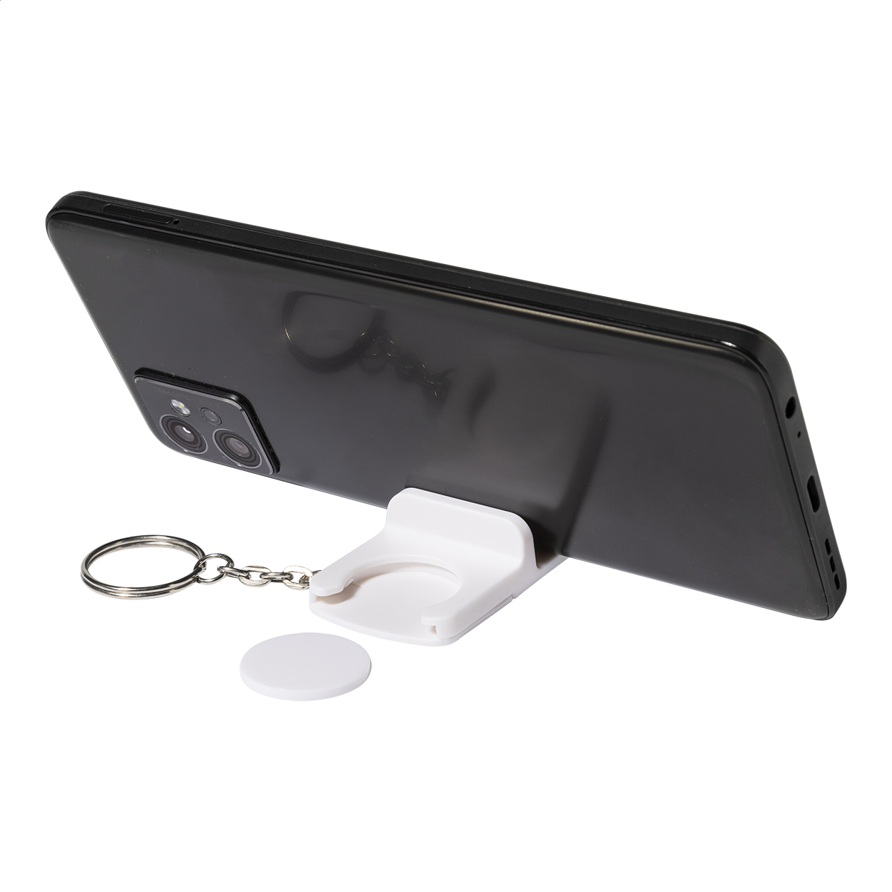 EKW-Chip aus recyceltem ABS mit Handyhalterfunktion und Schlüsselanhänger. Chipgröße: ø23×2 mm.