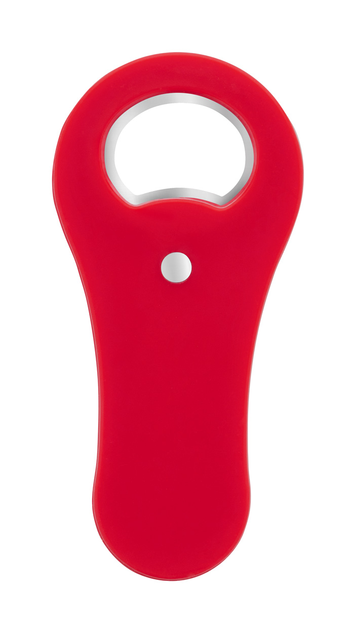Flaschenöffner aus recyceltem ABS-Kunststoff mit Kühlschrankmagnet.