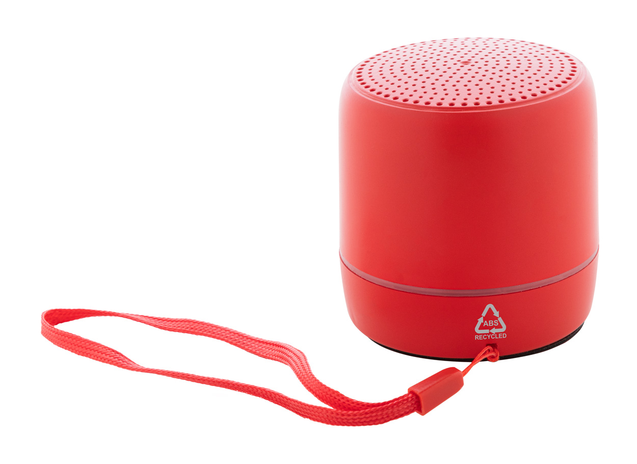 Kabelloser Lautsprecher aus recyceltem ABS mit Freisprechfunktion und integriertem, wiederaufladbarem Akku. Inklusive USB-Ladekabel.