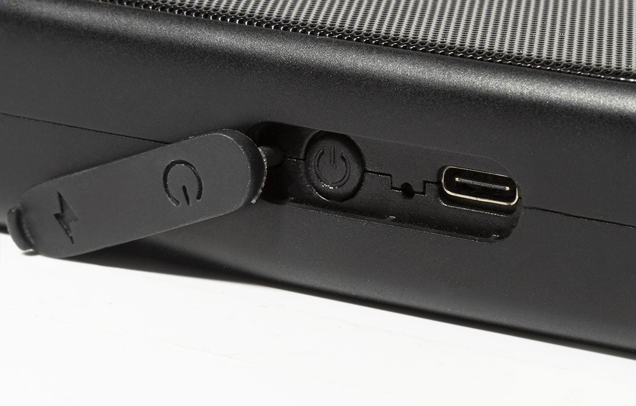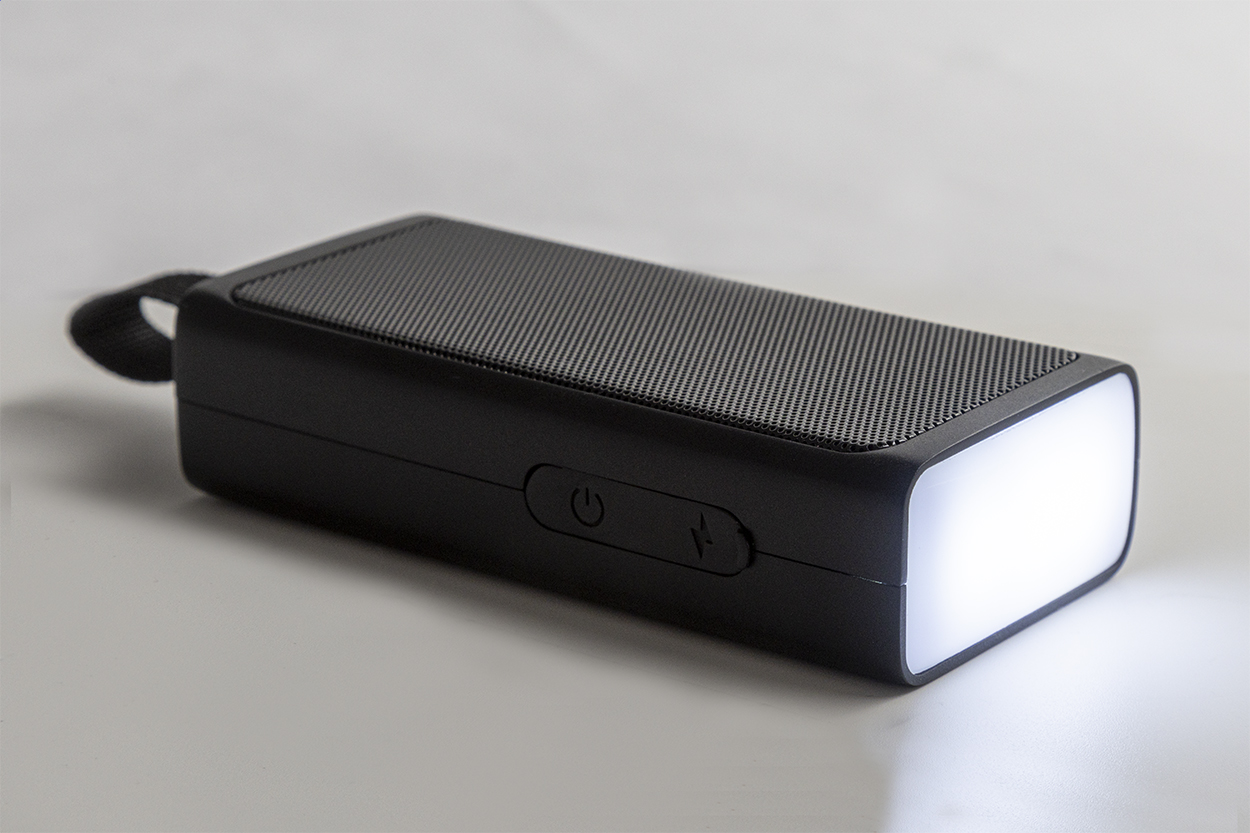 Lautsprecher aus recyceltem ABS mit Lautsprechernetz aus Metall, LED-Taschenlampe und magnetischer Funktion sowie eingebautem Akku (500mAh). Inkl. USB-Ladekabel.