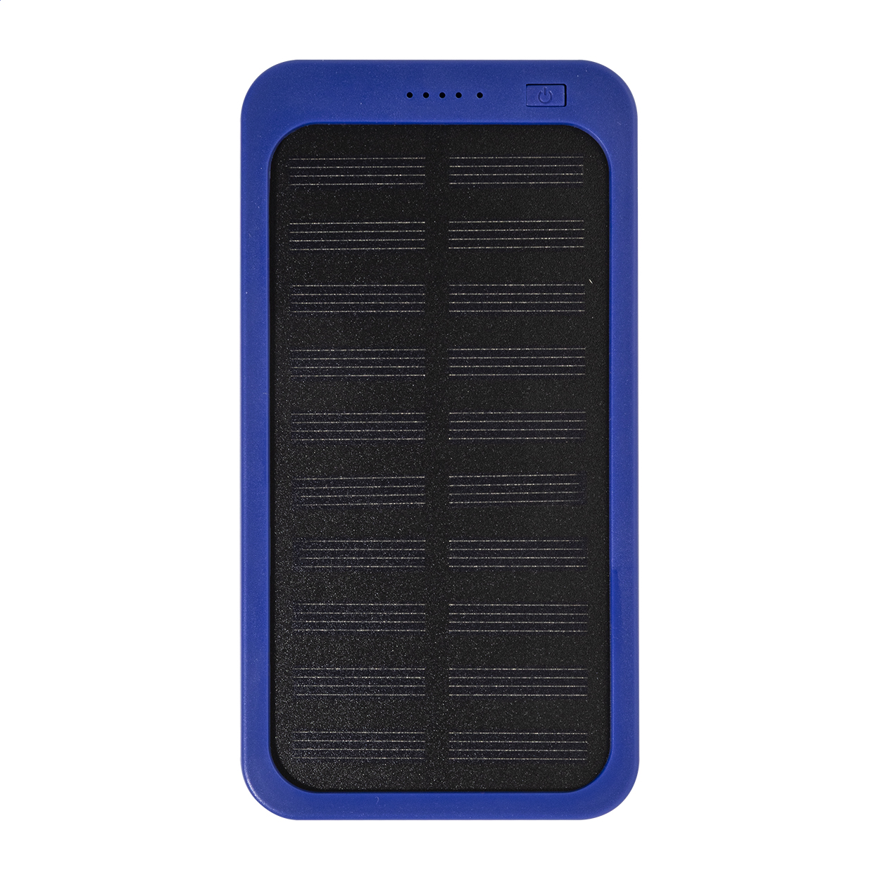Powerbank aus recyceltem ABS mit eingebautem Solar-Charger und 4000 mAh-Akku. Mit 1 USB, 1 USB-C Ladeports und USB-C Eingangsport. Inkl. USB-Ladekabel.