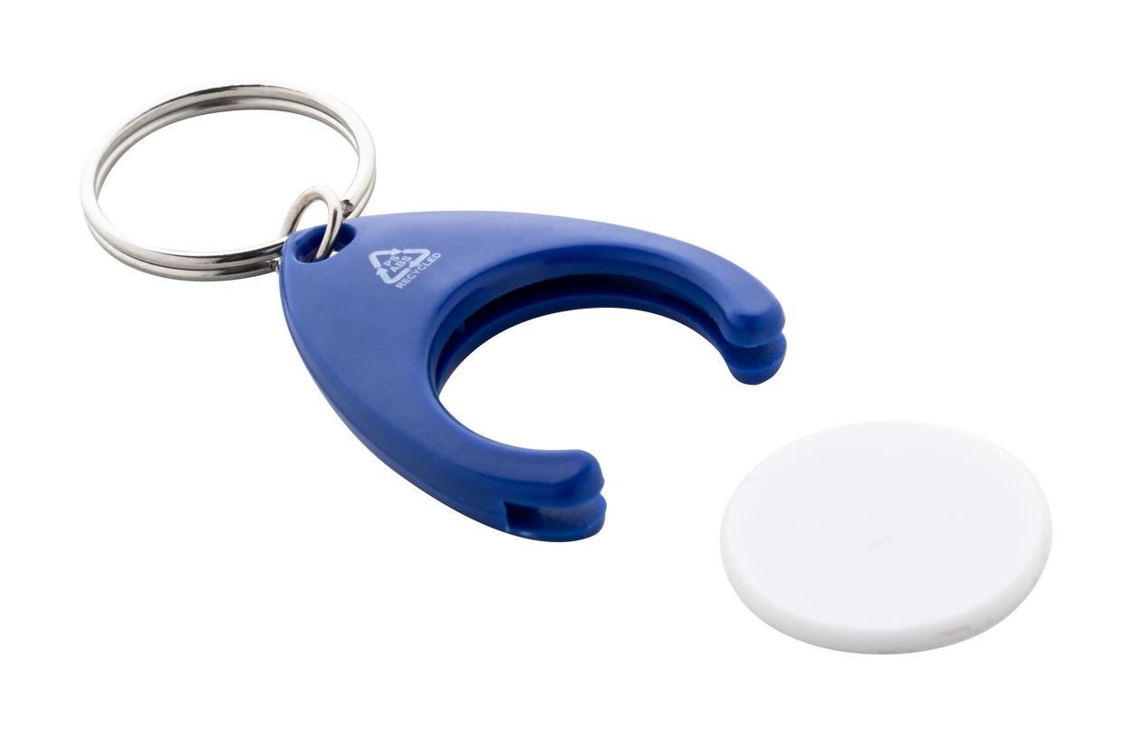 Schlüsselanhänger aus recyceltem ABS und recyceltem PS Kunststoff mit EKW-Chip und Metall-Schlüsselring. Chip-Größe: ø24×2 mm.