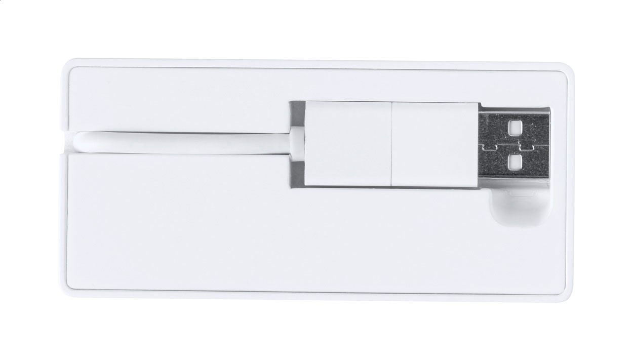 USB Hub aus recyceltem ABS-Kunststoff mit 2 USB und 1 USB-C Ports, USB 2.0. Inkl. Ladekabebel mit USB und USB-C Steckern.