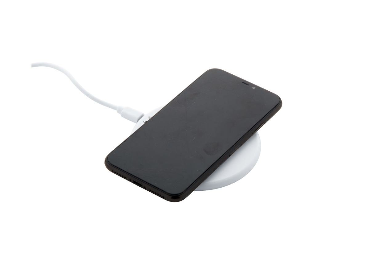 Wireless-Fastcharger (15W) aus recyceltem ABS-Kunststoff. Inkl. UBS-Ladekabel.
