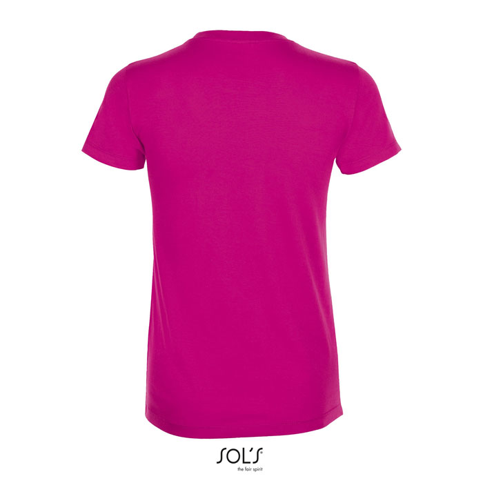 Beschreibung: SOL'S REGENT Damen T-Shirt aus Single-Jersey mit modisch tailliertem Schnitt. Rippkragen, Nackenband, Seitennähte. Material: 150g / m² Single-Jersey, 100% halbgekämmte, ringgesponnene Baumwolle.