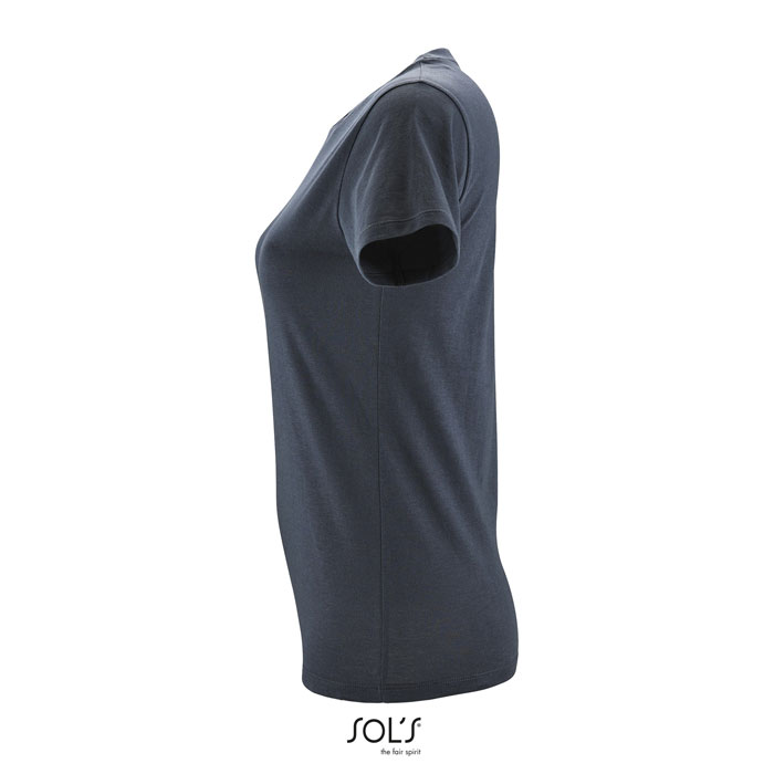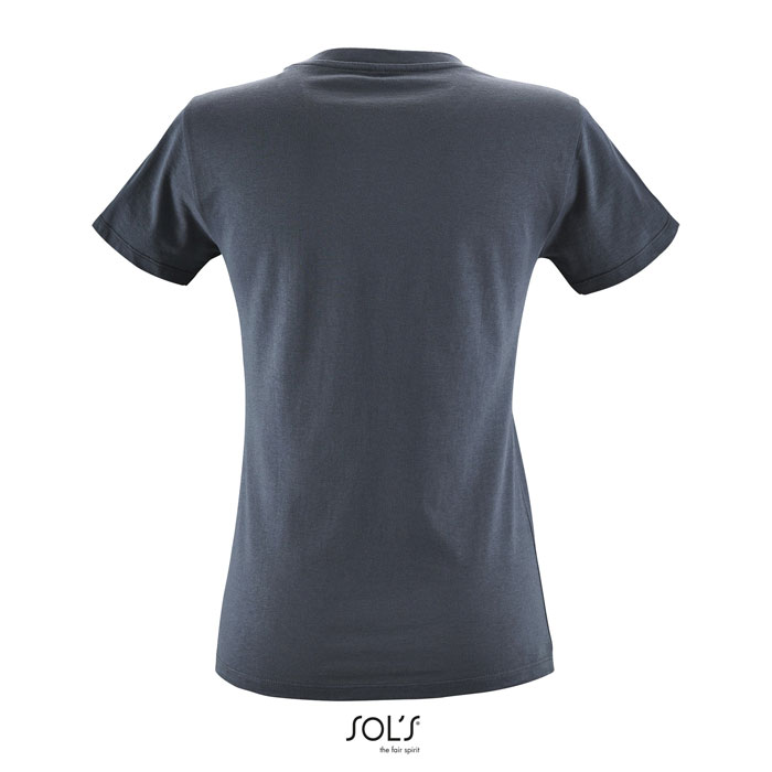 Beschreibung: SOL'S REGENT Damen T-Shirt aus Single-Jersey mit modisch tailliertem Schnitt. Rippkragen, Nackenband, Seitennähte. Material: 150g / m² Single-Jersey, 100% halbgekämmte, ringgesponnene Baumwolle.