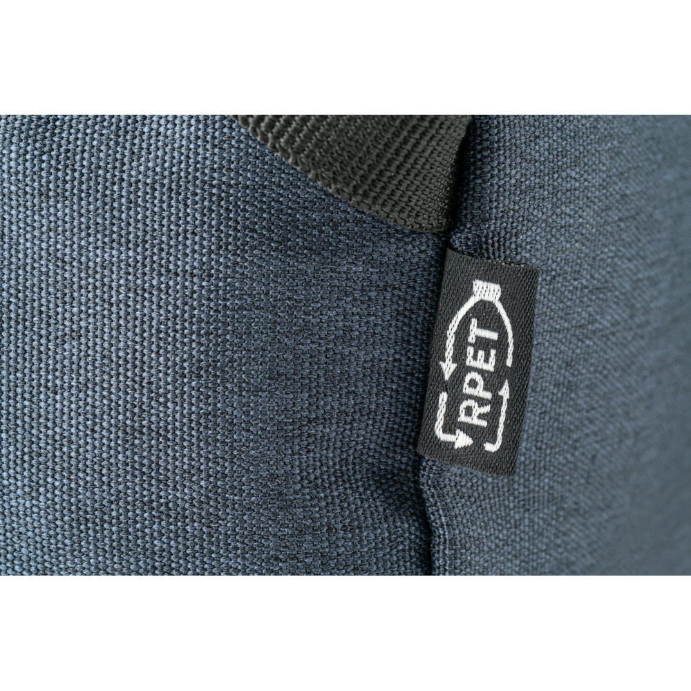 Kulturtasche aus Polyester aus recyceltem 600D mit gefuttertem Innenbereich. Vordertasche mit Reißverschluss und seitlicher Schlaufe. 220 x 120 x 110 mm