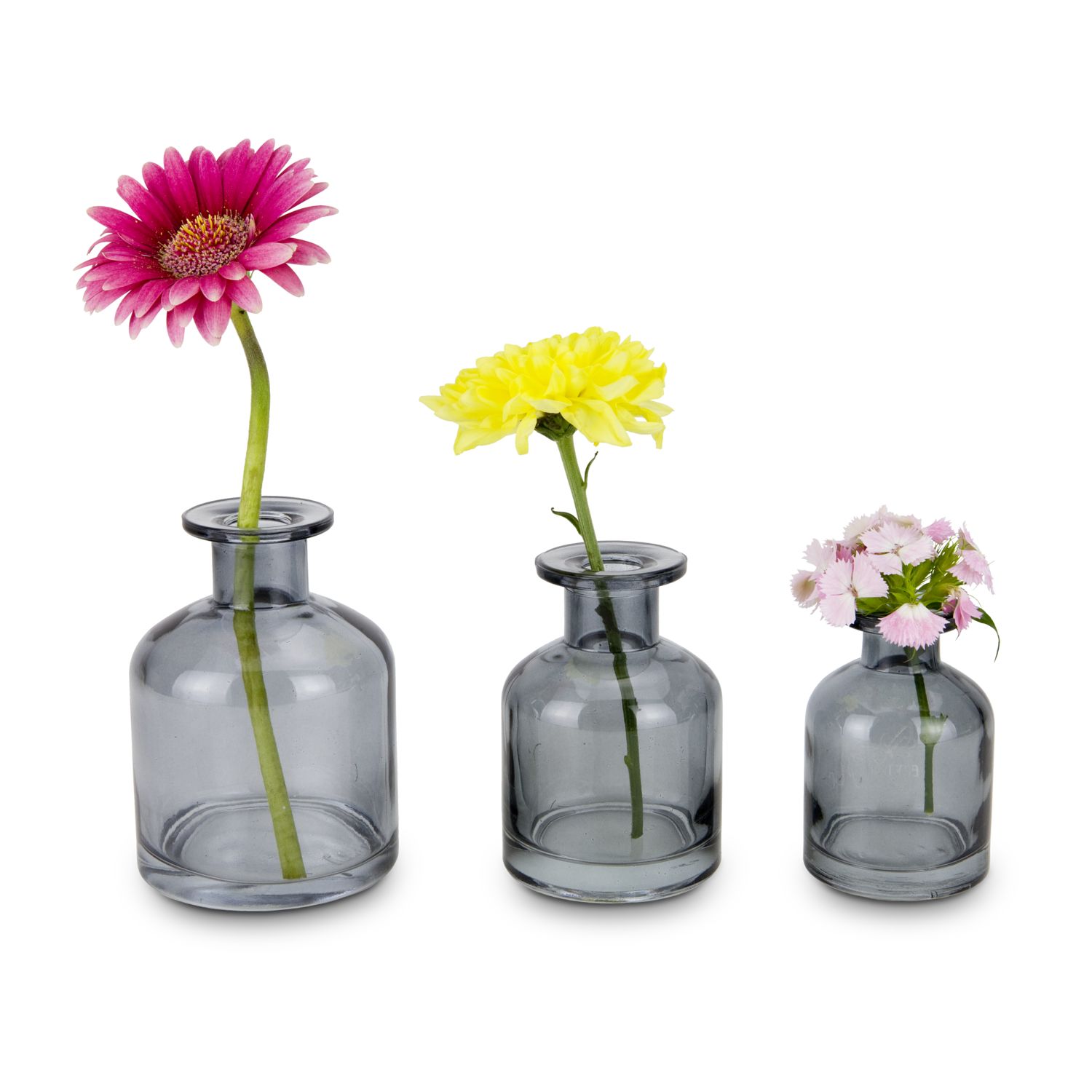 3 Vasen in unterschiedlichen Größen, als harmonisches Set oder einzeln verwendbar, zeitloses Design für jede Einrichtung passend, modernes schwarzes Glas, auch als dekorative Kerzenständer verwendbar (Glas)