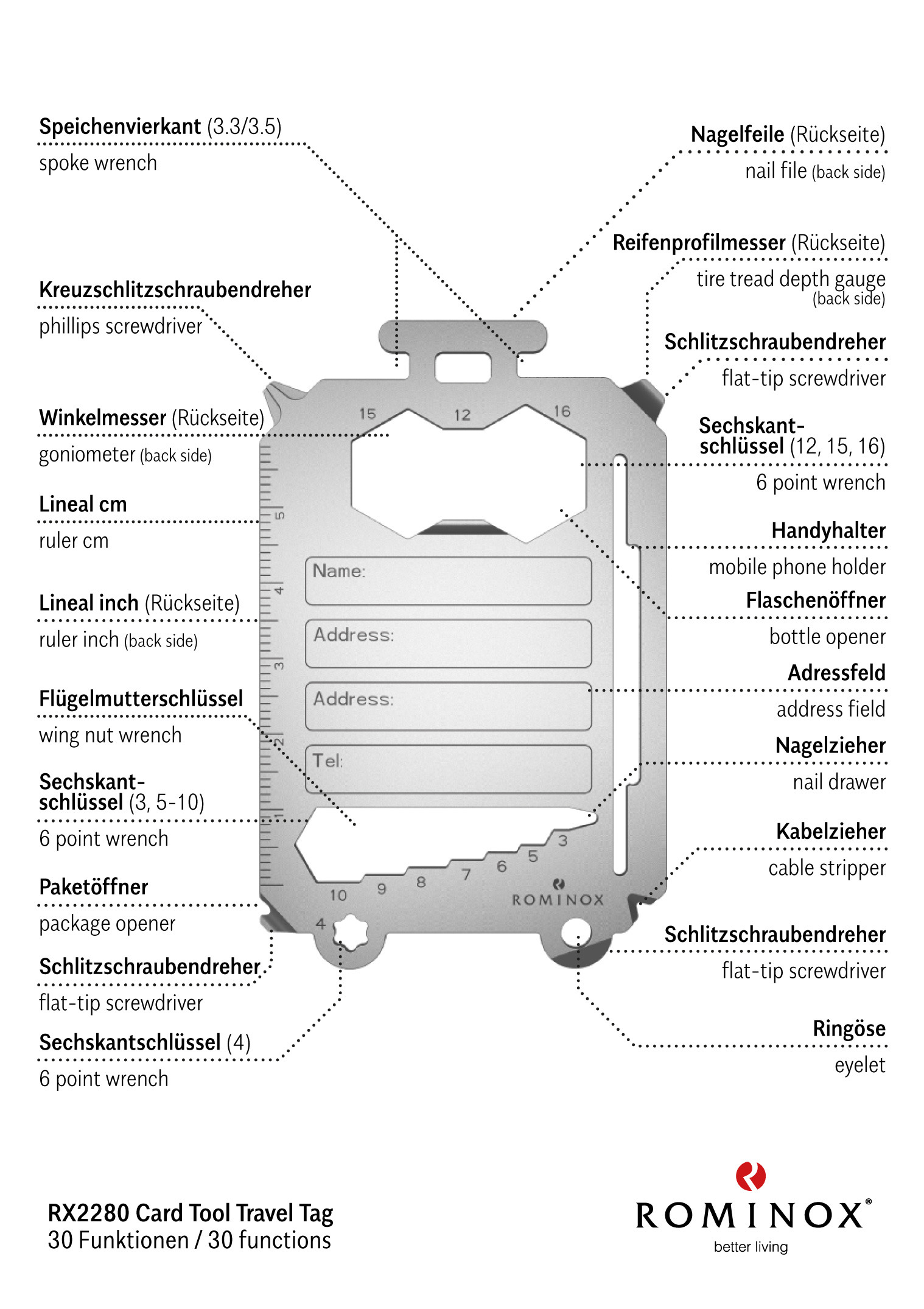 Informationen zu "ROMINOX® Card Tool // Travel Tag - 30 Funktionen"