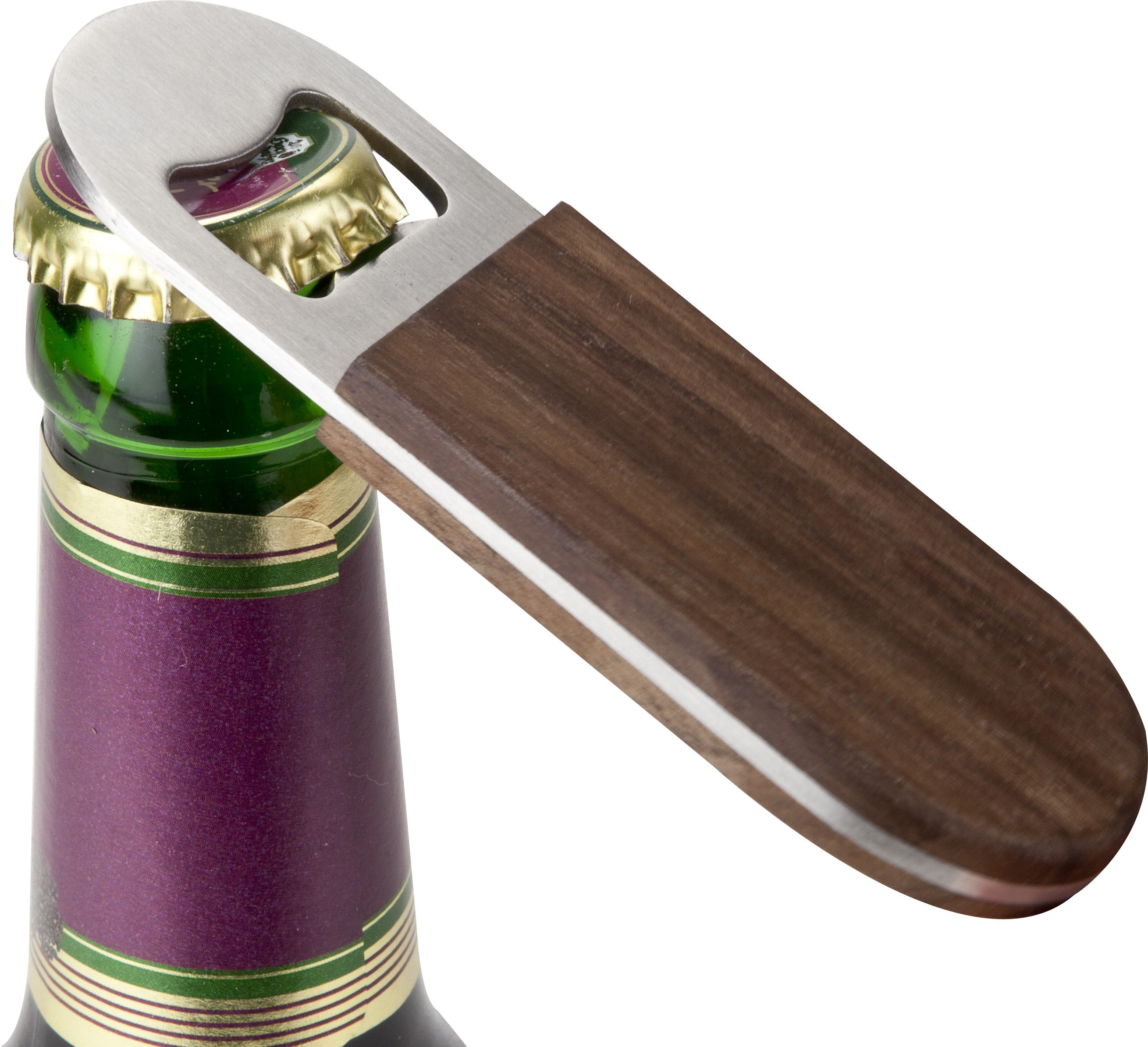 Hochwertiger, handlicher Flaschenöffner, edle Kombination aus dunklem Walnussholz und silbernem Edelstahl, geschmeidige Haptik dank abgerundetem Design (Walnussholz, Edelstahl)