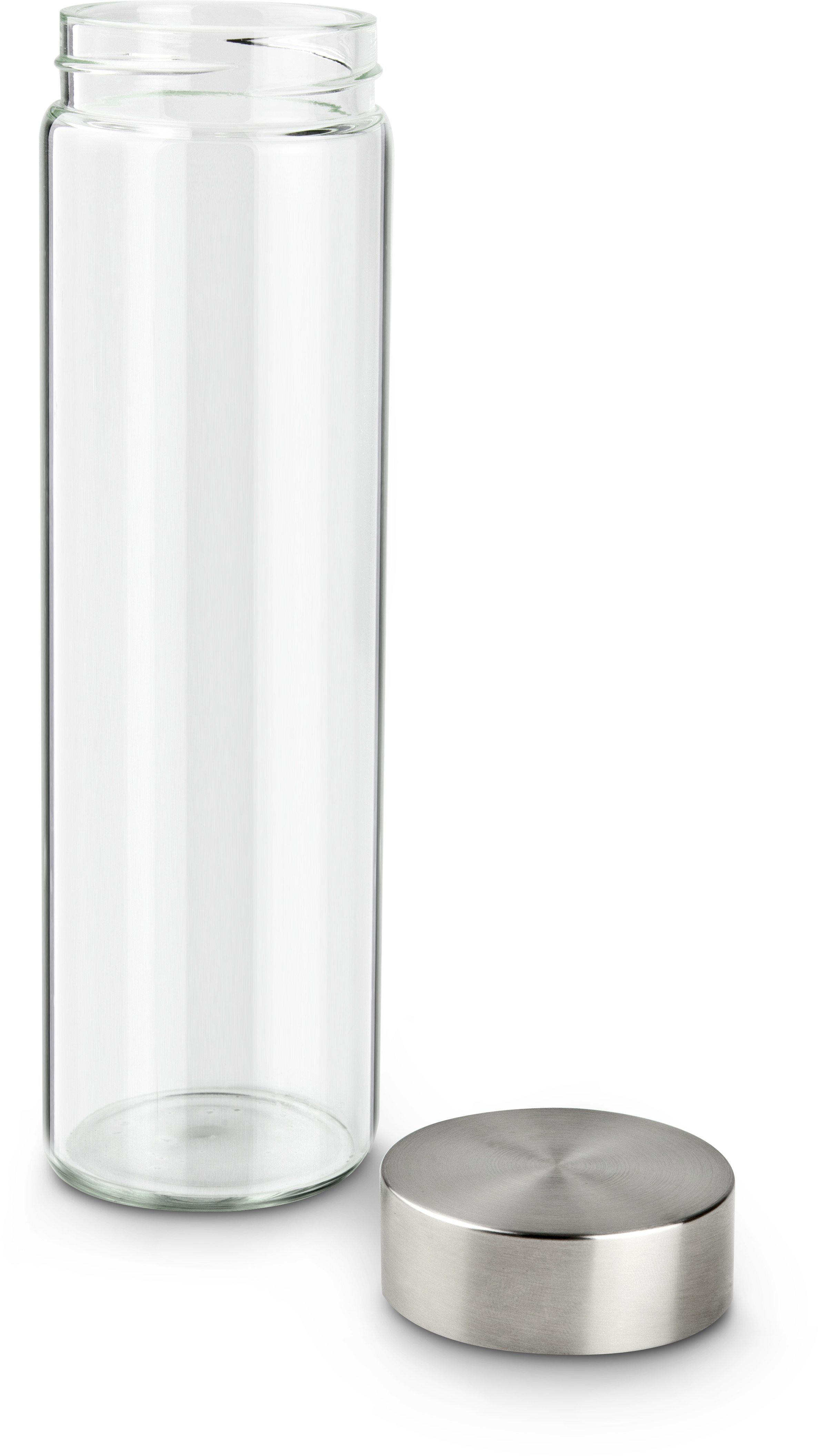 Puristisches und lineares Design, fest verschließender Schraubdeckel mit Dichtungsring, ideal für den Schreibtisch oder den Konferenzraum, temperatur- und spülmaschinenbeständiges Glas, 500 ml (Borosilikatglas, Edelstahl - seidenmatt gebürstet)
