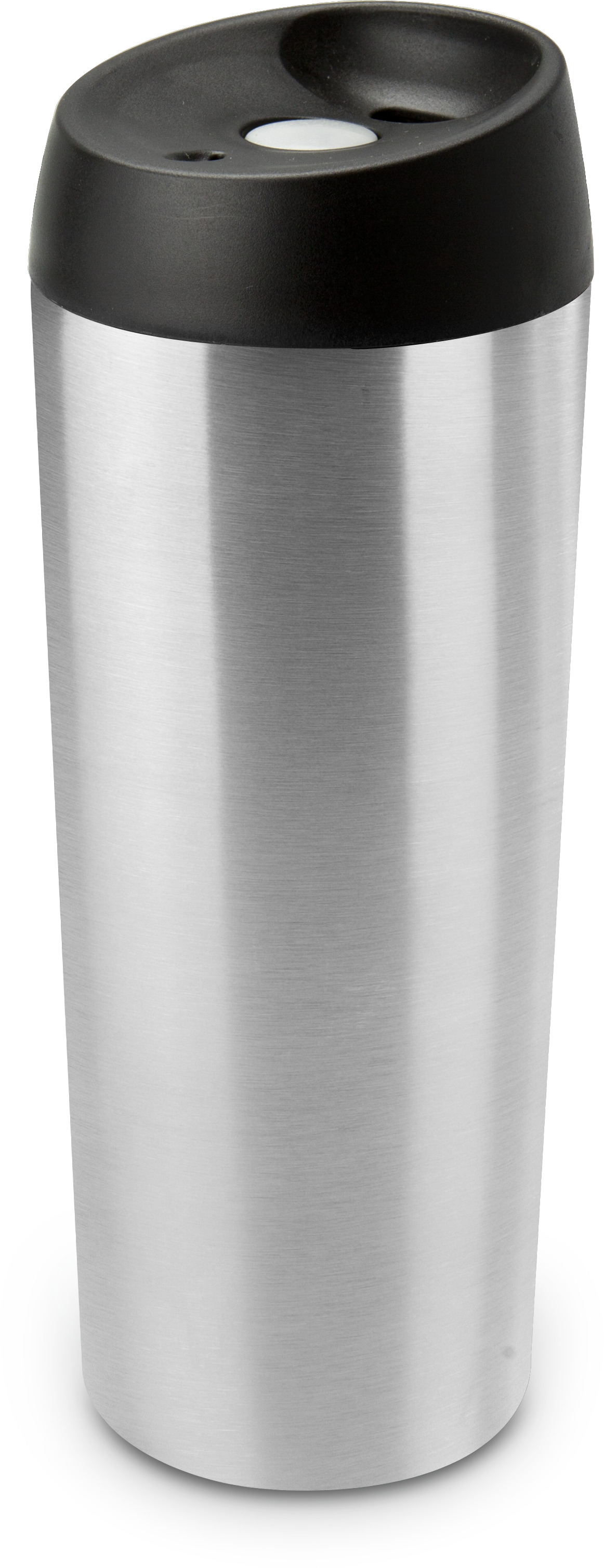 Praktischer Thermobecher - ergonomisches Design, platzsparend, leicht, stabil, dicht, isolierende Doppelwand, auf Knopfdruck trinkbereit, 500 ml (Edelstahl - seidenmatt gebürstet, Kunststoff). Verfügbar in Silber oder Schwarz