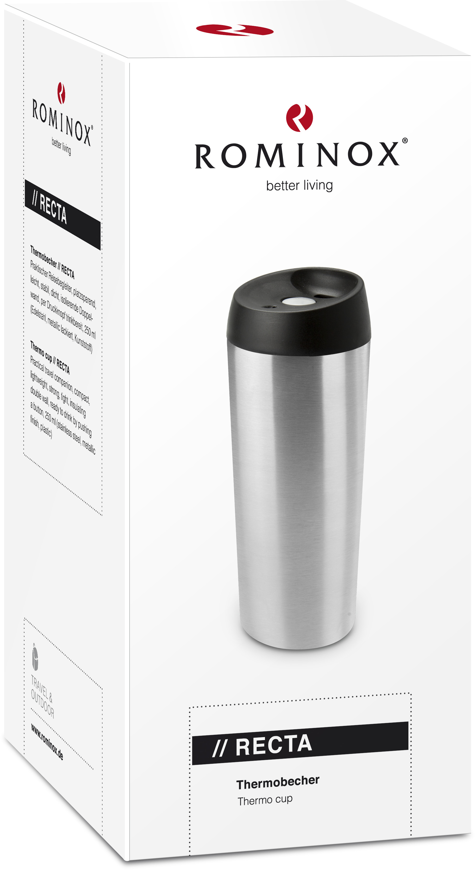 Veredelung: Siebdruck auf dem Produkt (max. 2c), Werbeanbringung auf dem Körper des Rominox Produkts, max. 18 x 10 cm