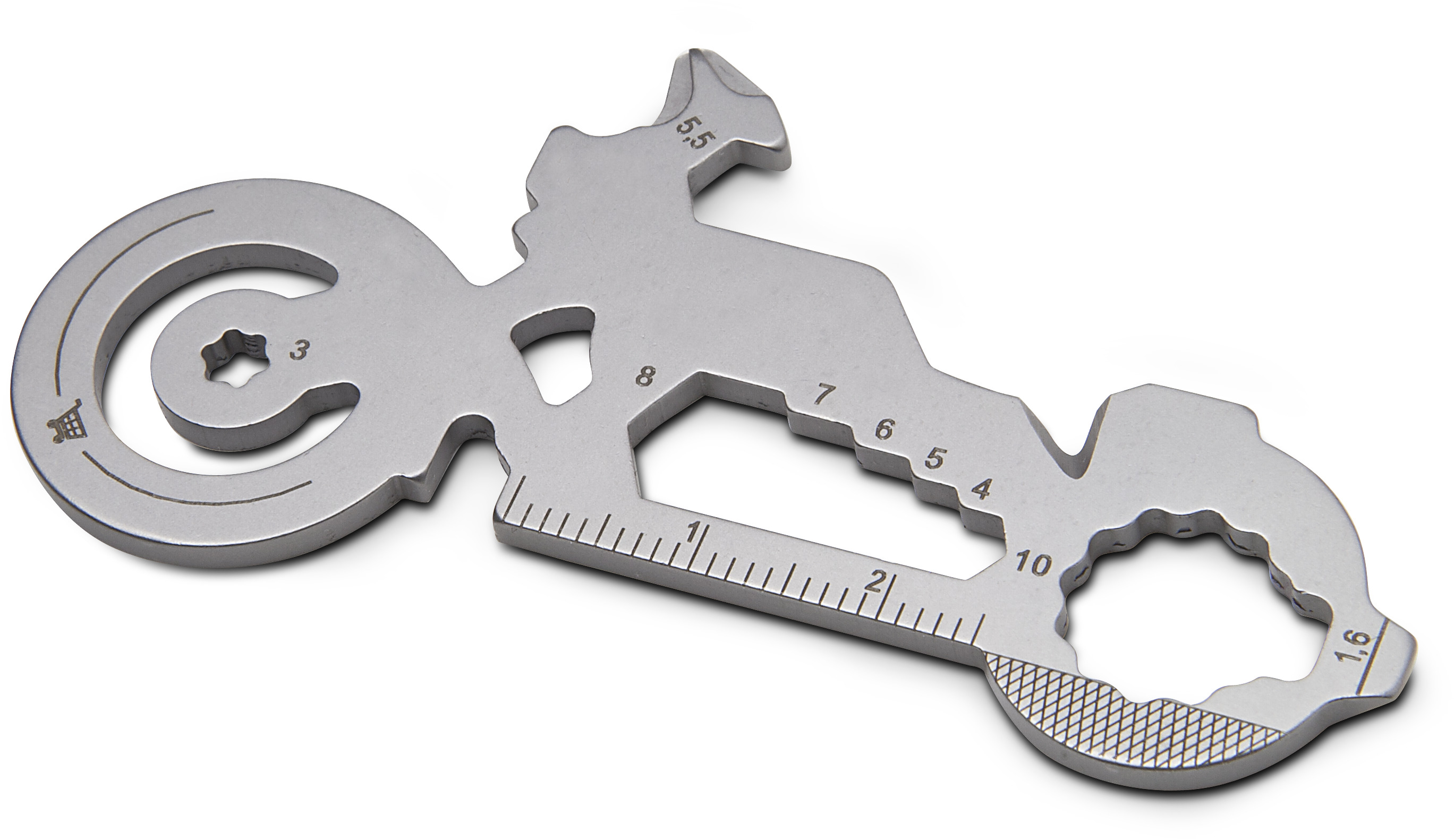 Multitool (aus robustem Edelstahl) für den Schlüsselbund inkl. Funktionsbeschreibung und Standard-Kartonverpackung, kundenindividuelle Verpackung und Funktionsbeschreibung ab 100 Stück möglich .In verschiedenen Standarddesigns verfügbar . Key Tool als Schlüsselanhänger mit 21 Funktionen: 8 Sechskantschlüssel, 2 Speichenvierkant, 2 Schlitzschraubendreher, 1 Nagelzieher, 1 Kreuzschlitzschraubendreher, 1 Kabelzieher, 1 Flaschenöffner, 1 Zentimeter Lineal, 1 Inch Lineal, 1 Reifenprofilmesser (1,6 mm), 1 Nagelfeile, 1 Einkaufswagenlöser - ab 3.000 Stück auch als Sonderproduktion mit individueller Key Tool Form möglich. Sprechen Sie uns an!