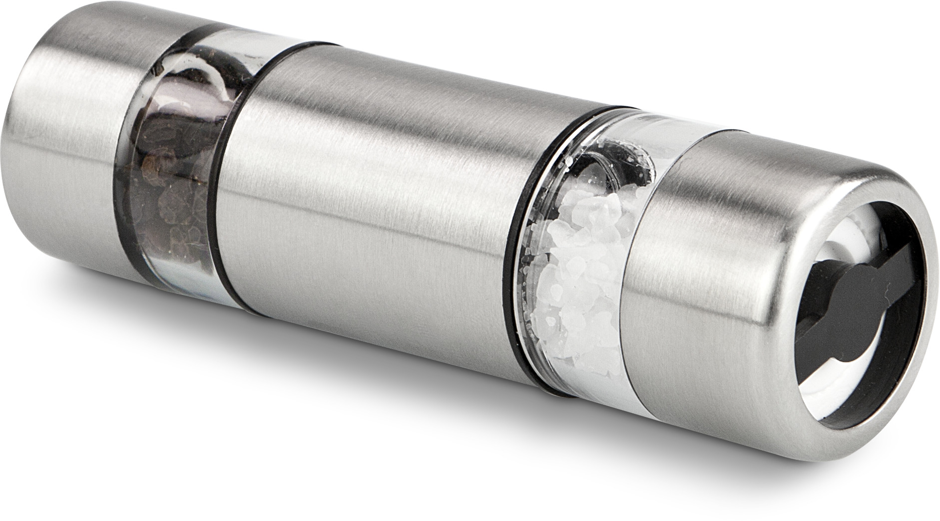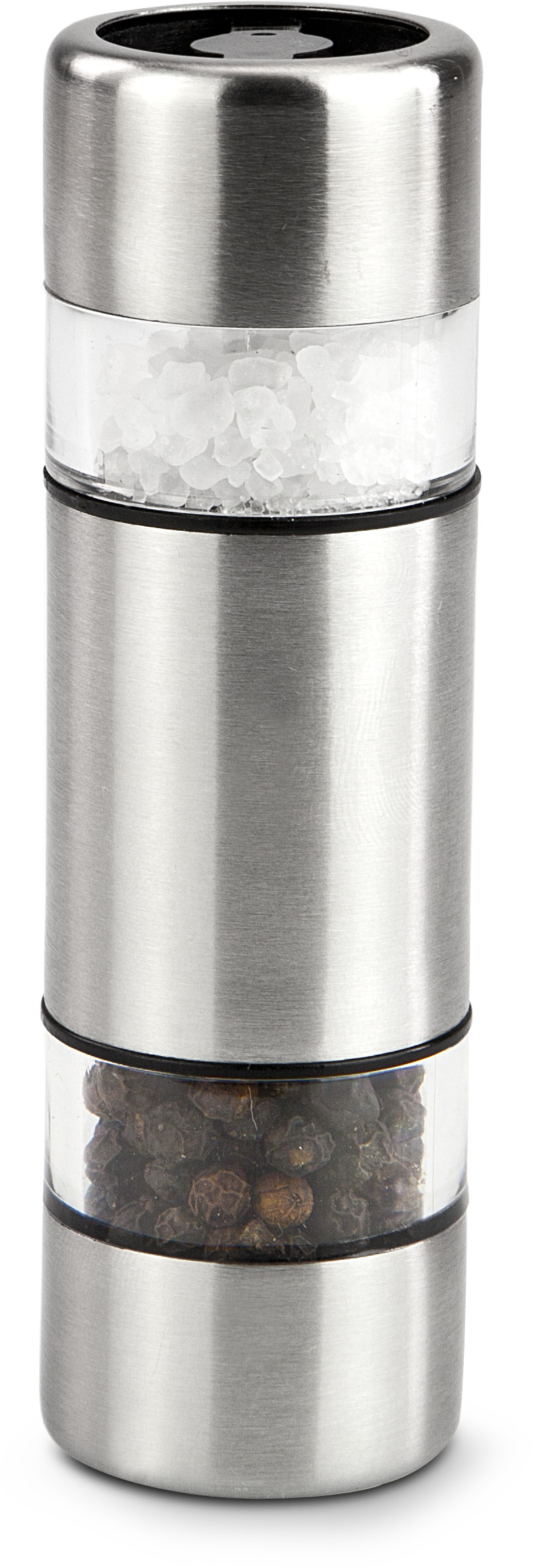 Klein, fein und immer griffbereit, manuelle Mühle mit zwei getrennten Keramikmahlwerken für Salz und Pfeffer (Edelstahl - seidenmatt gebürstet, Keramik, Kunststoff, ohne Gewürze)