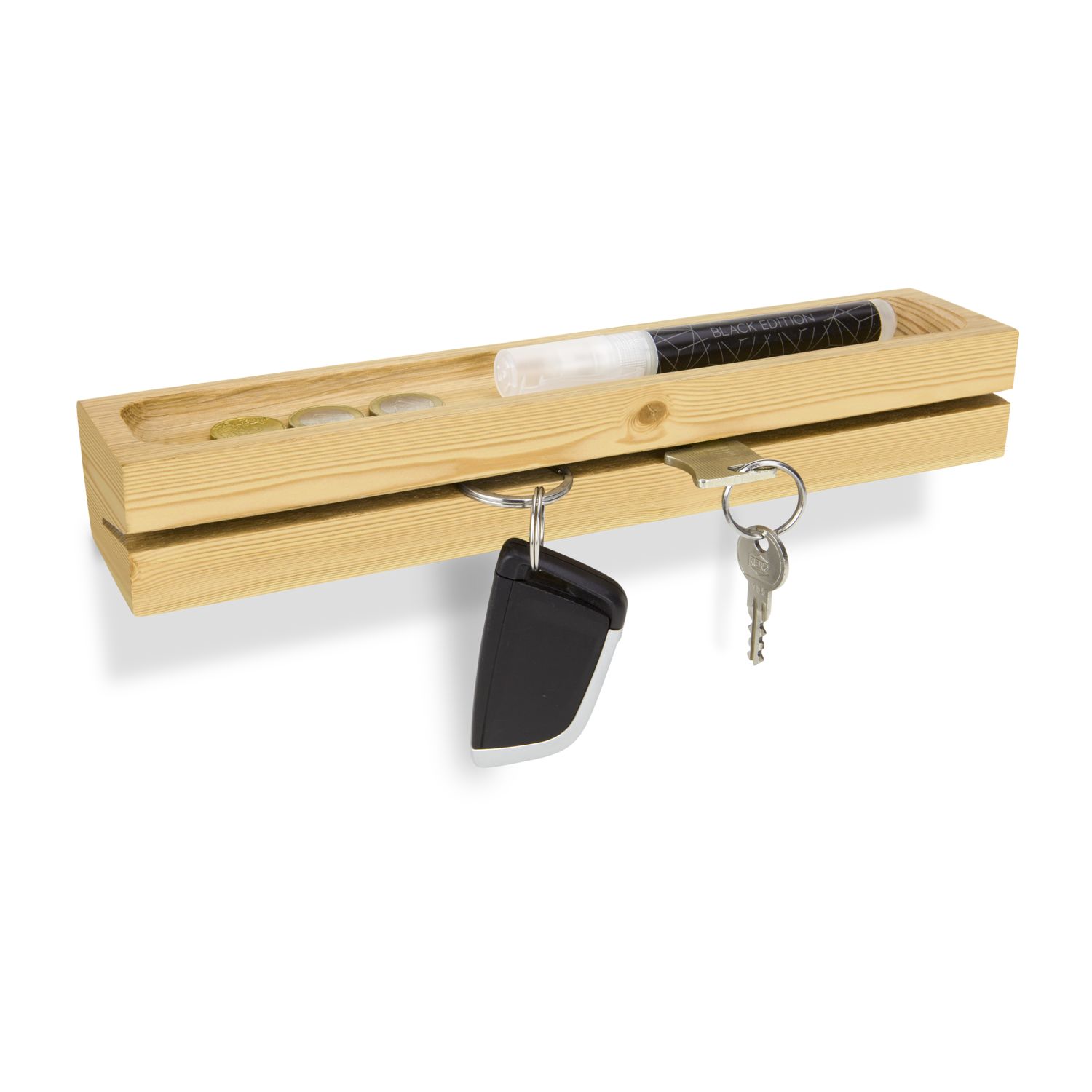 Modernes Schlüsselbrett aus Kiefer mit integriertem Schlitz zur einfachen Aufbewahrung mehrerer Schlüsselbunde, große Ablagefläche auf der Oberseite, platzsparendes Design (Kiefer, inkl. Schrauben)