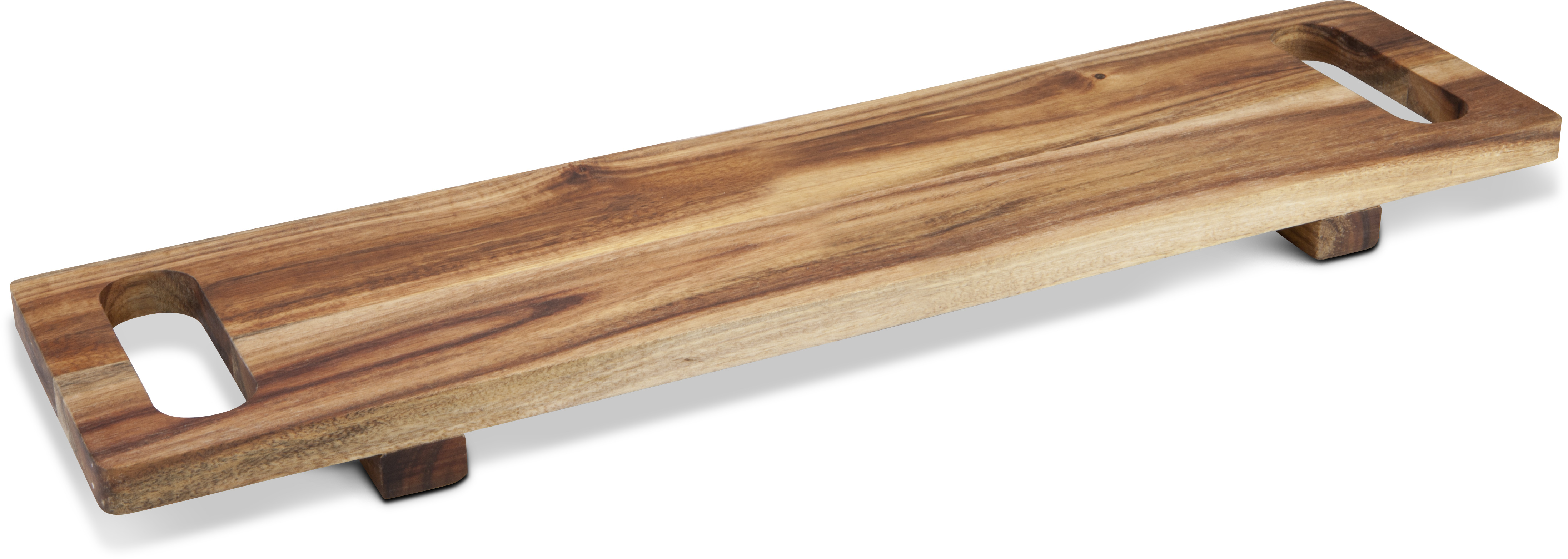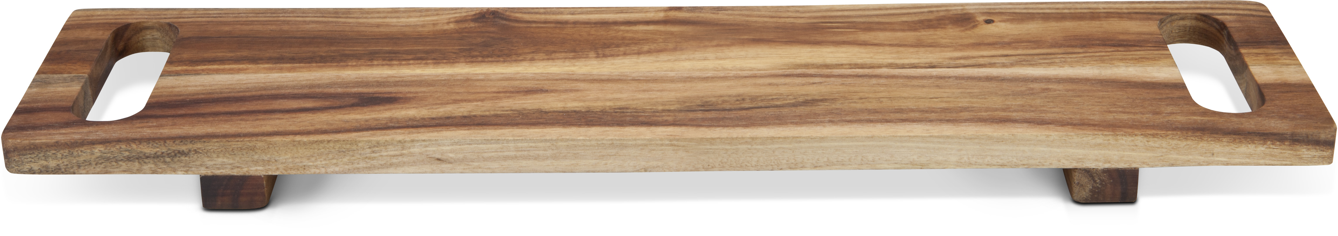 Langes Servierbrett aus natürlichem Akazienholz, stabile Standfüße, zur stilvollen Präsentation von Lebensmitteln oder als elegante Dekoration in Kombination mit Vasen, Blumen oder Kerzen (Akazienholz)