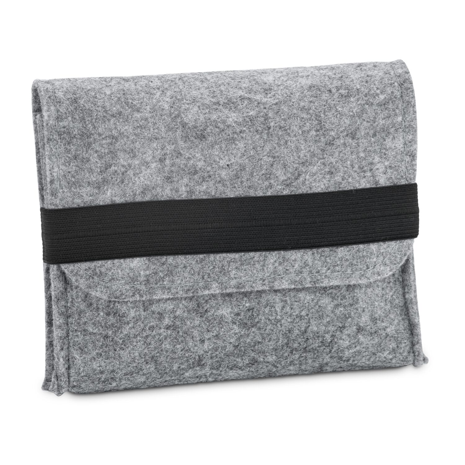 Hochwertige Filztasche als moderner Organizer mit Gummiverschluss, stilvoll meliertes Hellgrau, handliches, praktisches Design, ideal zur Aufbewahrung von Kabeln, externen Festplatten, USB-Sticks oder anderen Kleinigkeiten (veganer Filz aus 100 % recyceltem PET, zertifiziert nach Global Recycling Standard)