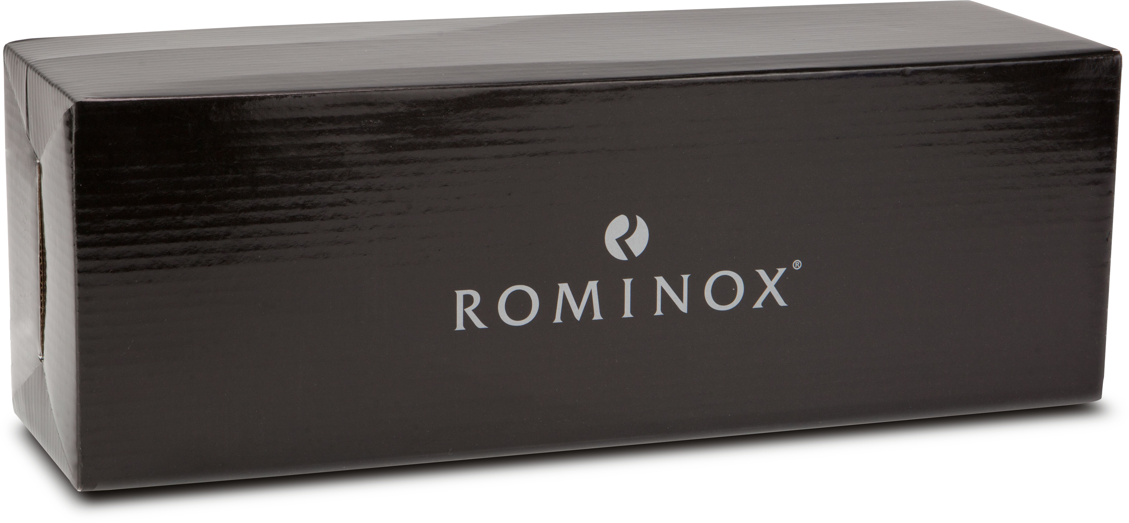 Veredelung: Siebdruck auf dem Produkt (max. 2c), Werbeanbringung auf der Holzbox des Rominox Produkts, max. 32 x 9 cm
