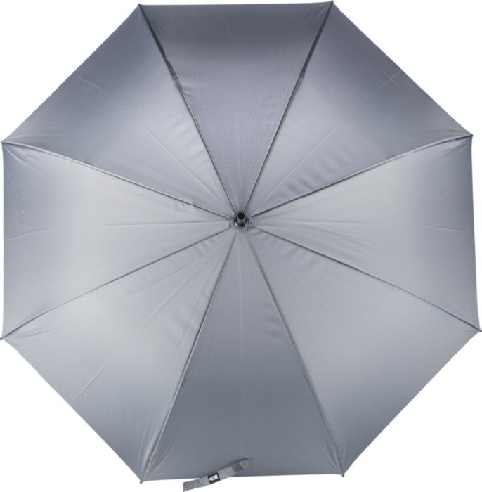 RPET 190T automatischer Golfschirm (27 Zoll) mit acht Paneelen und einem Fiberglasgestell. Mit Druckknopföffnung und rPET-Etikett auf dem Klettverschluss. Winddicht.
