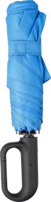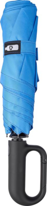 Faltbarer Automatikschirm (27 Zoll) aus rPET 190T mit sechs Paneelen und einem Stahlgestell. Mit einem rPET-Etikett auf dem Klettverschluss und einem Karabinergriff aus Kunststoff. Inklusive Tasche. Winddicht.