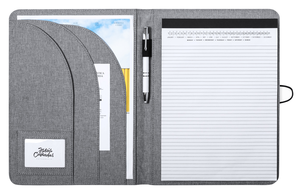 Dokumentenmappe aus RPET-Polyester, mit 20 Seiten (liniert). Größe A4.