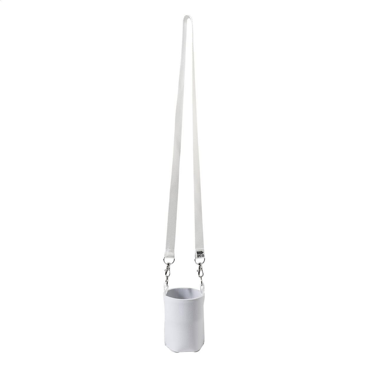 Individuelle Kühlhülle aus RPET-Neopren für 0,33-Liter-Standard-Aluminiumdosen mit Karabinerhaken. Der Preis ist inkl. vollflächigem Sublimationsdruck des RPET-Tragegurtes. Mindestmenge: 100 Stk.