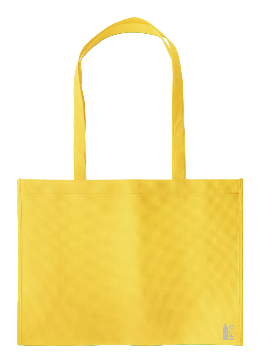 RPET-Einkaufstasche mit Seitenfalte und langen Griffen, 80 g / m². Mit RPET-Label.