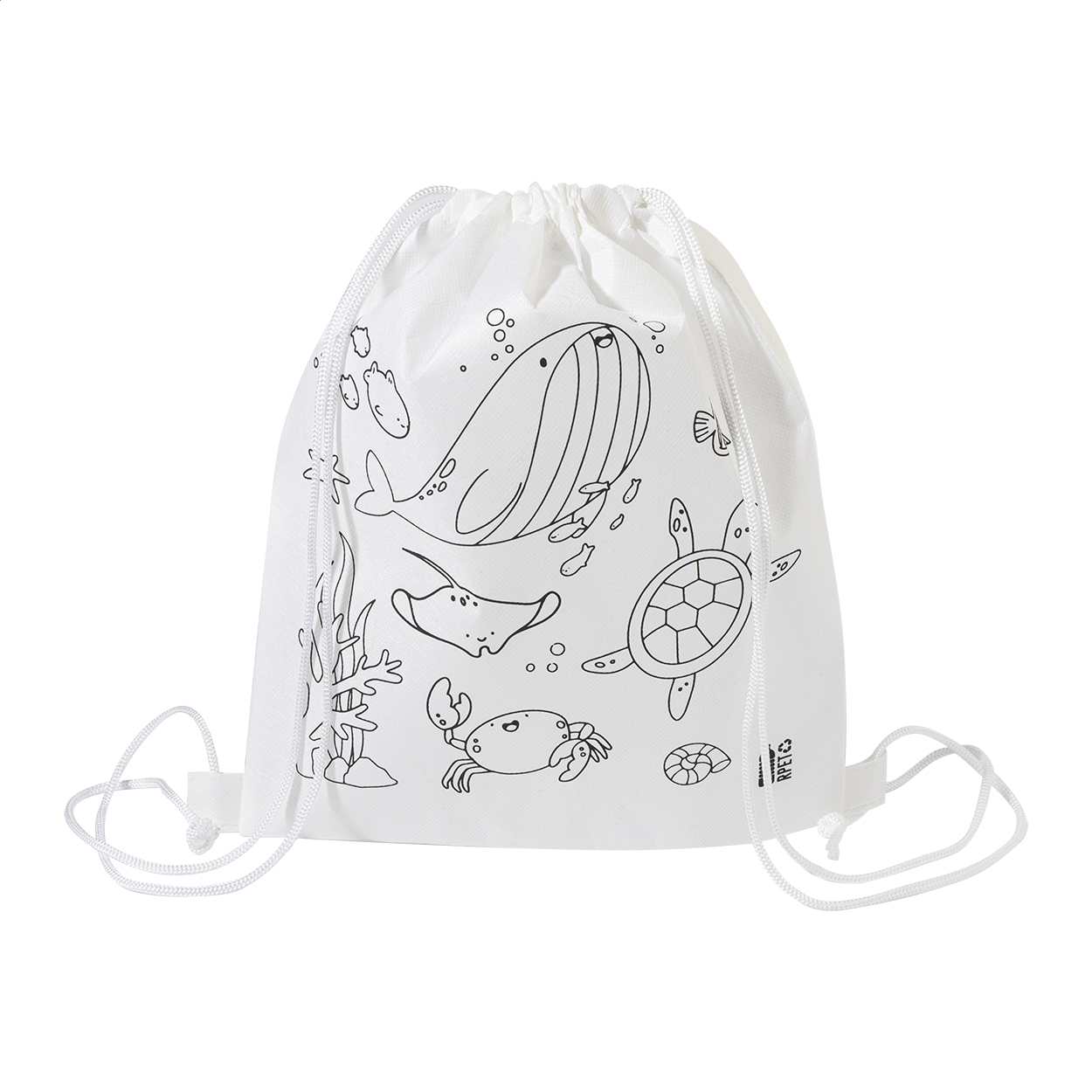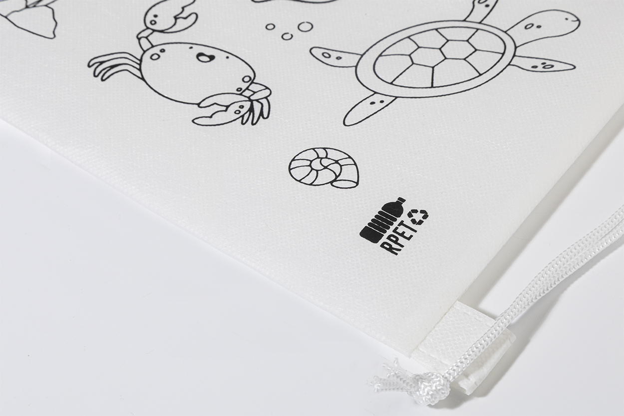 Turnbeutel für Kinder zum Ausmalen aus RPET Non-Woven mit 5 Wachsmalstiften.