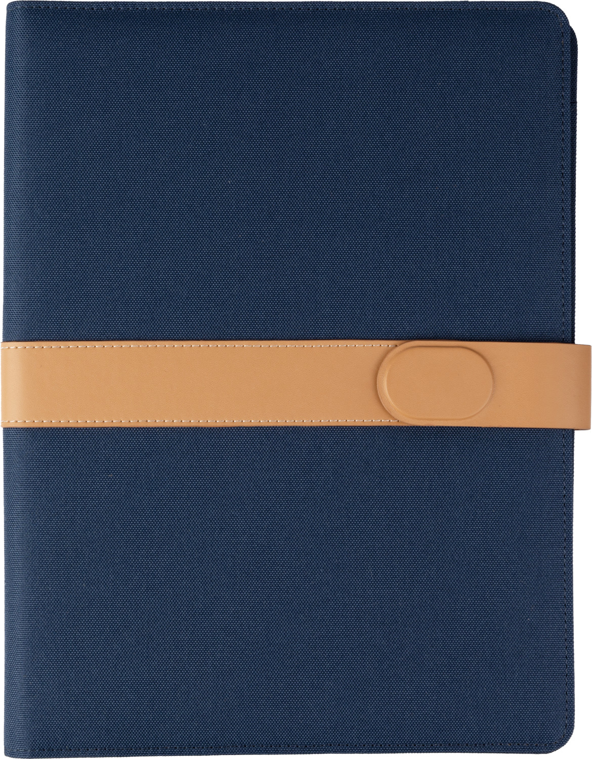 RPET-Faltmappe (ca. A4) mit PU-Detail auf dem Umschlag. Enthält ein Notizbuch mit 20 linierten Seiten (70 g / m²), mehreren Fächern, Stiftschlaufe und Magnetverschluss. Einzeln verpackt in einer Kraftpapier Hülle.