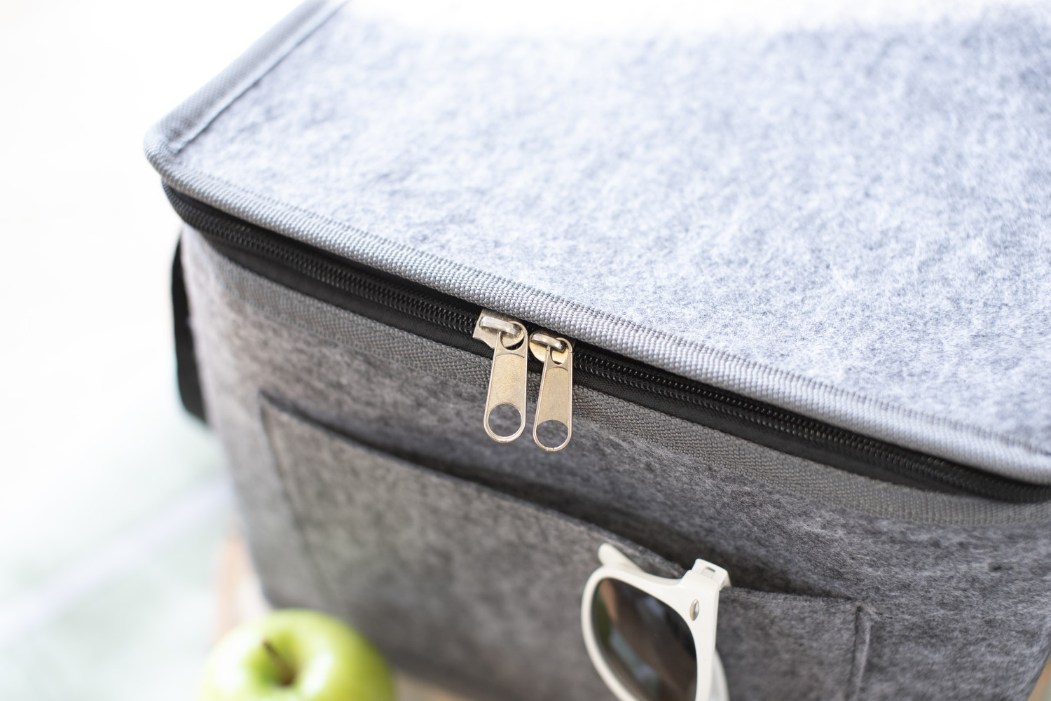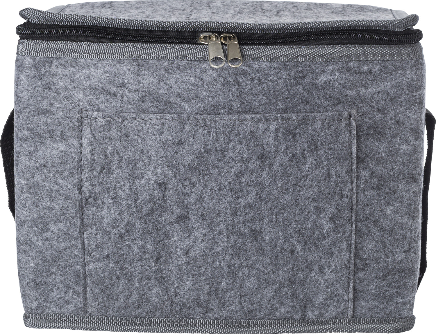 RPET-Filz-Kühltasche mit Alufolien-Innenausstattung und Vordertasche.
