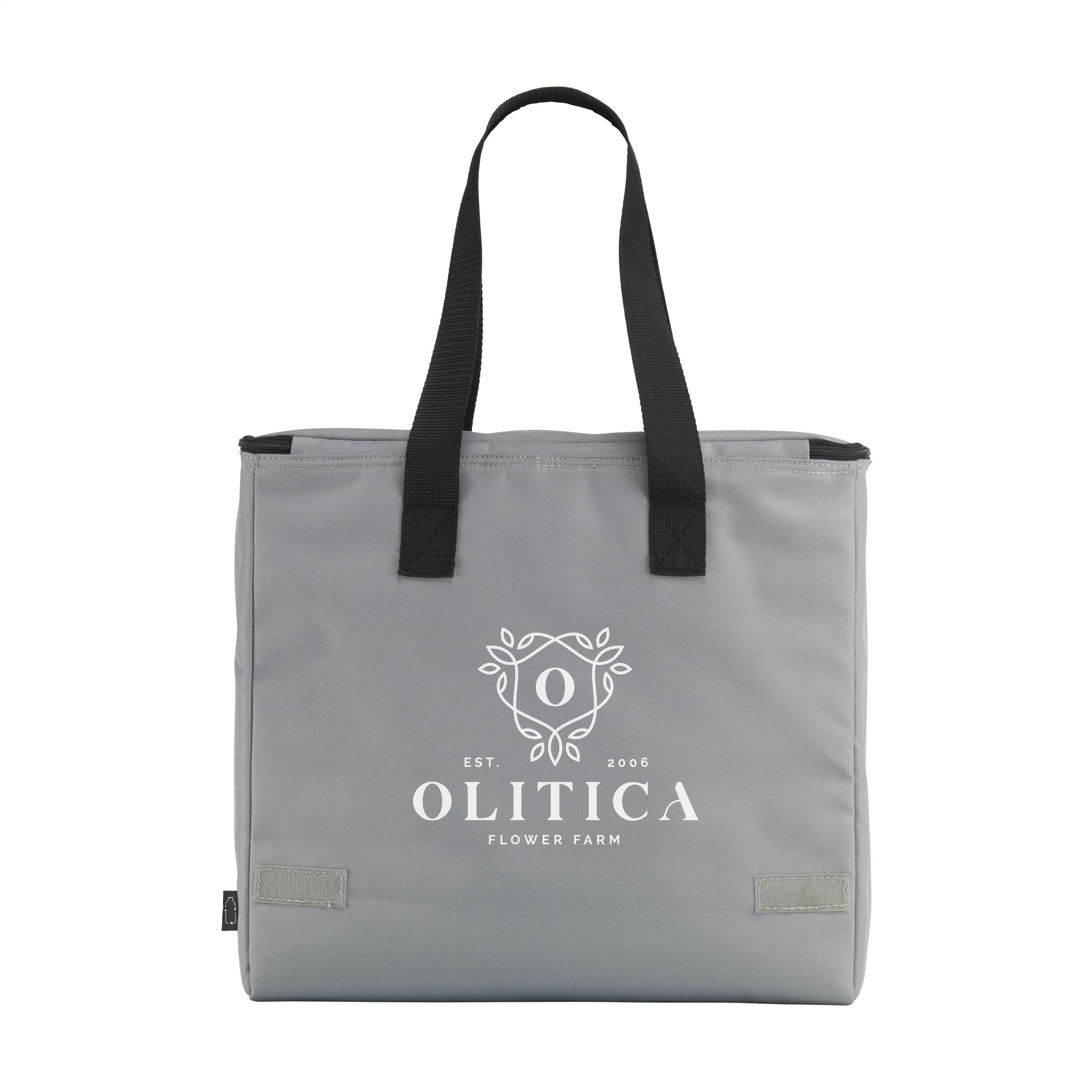 WoW! Große, stabile Kühltasche mit Reißverschluss und Tragegriffen. Dieses Produkt wird aus 600D-RPET-Polyester hergestellt, einem Material aus recycelten PET-Flaschen und Textilfasern. Diese Tasche bietet viel Stauraum und kann bis zu acht 1,5-Liter-Flaschen fassen. Diese Tasche kann auch zum Transportieren von Zwei-Liter-Flaschen verwendet werden. Fassungsvermögen ca. 24 Liter.
