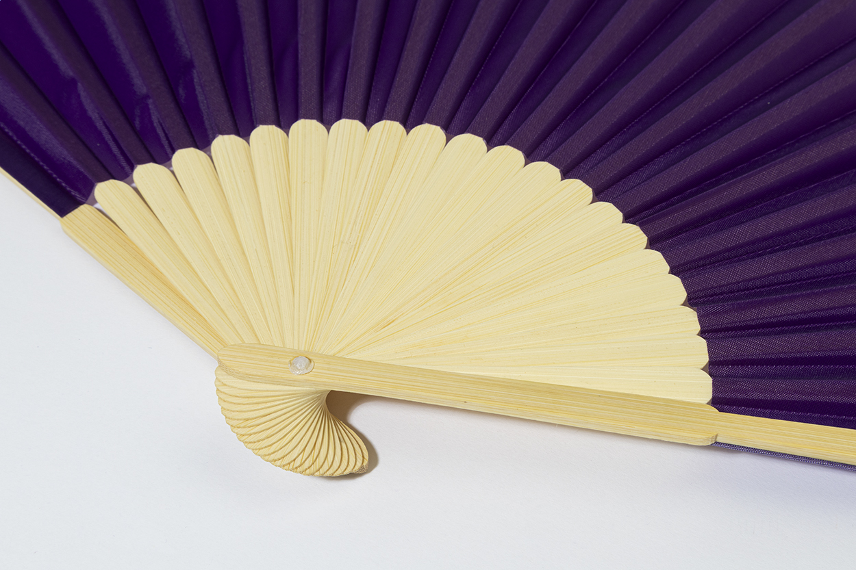 Handfächer aus RPET-Polyester mit Bambusspeichen.