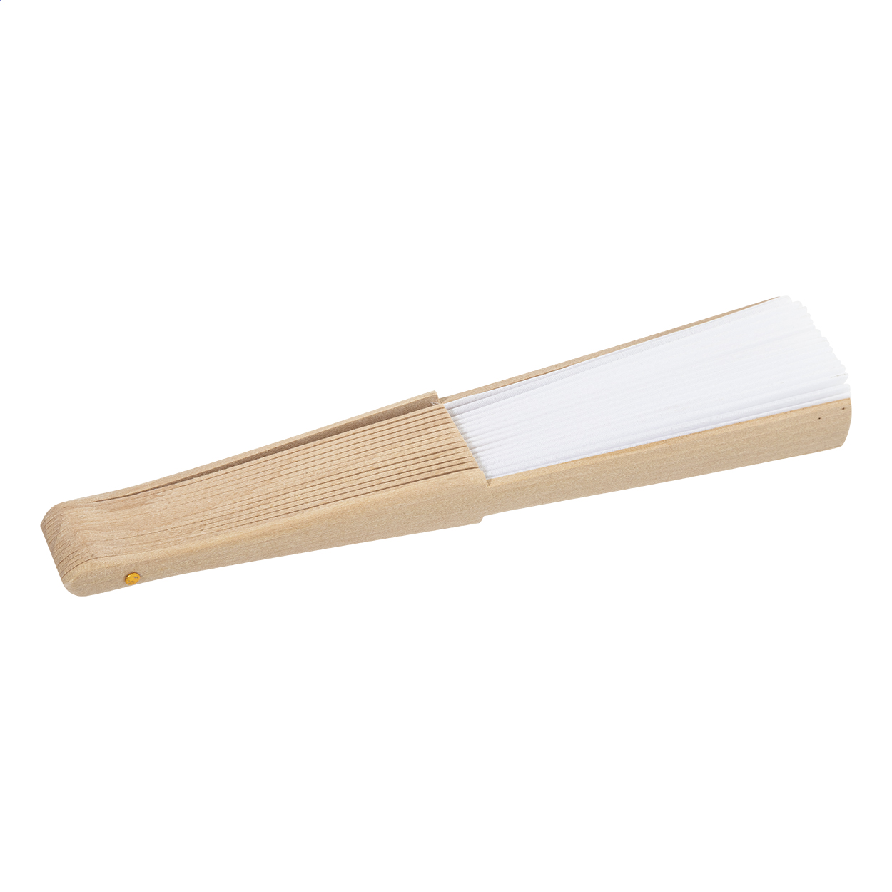 Handfächer aus RPET-Polyester mit Holzspeichen.