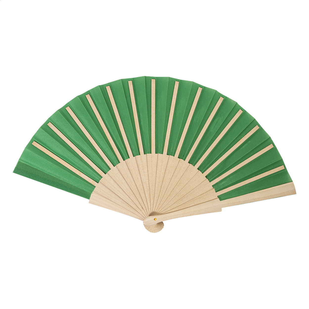 Handfächer aus RPET-Polyester mit Holzspeichen.
