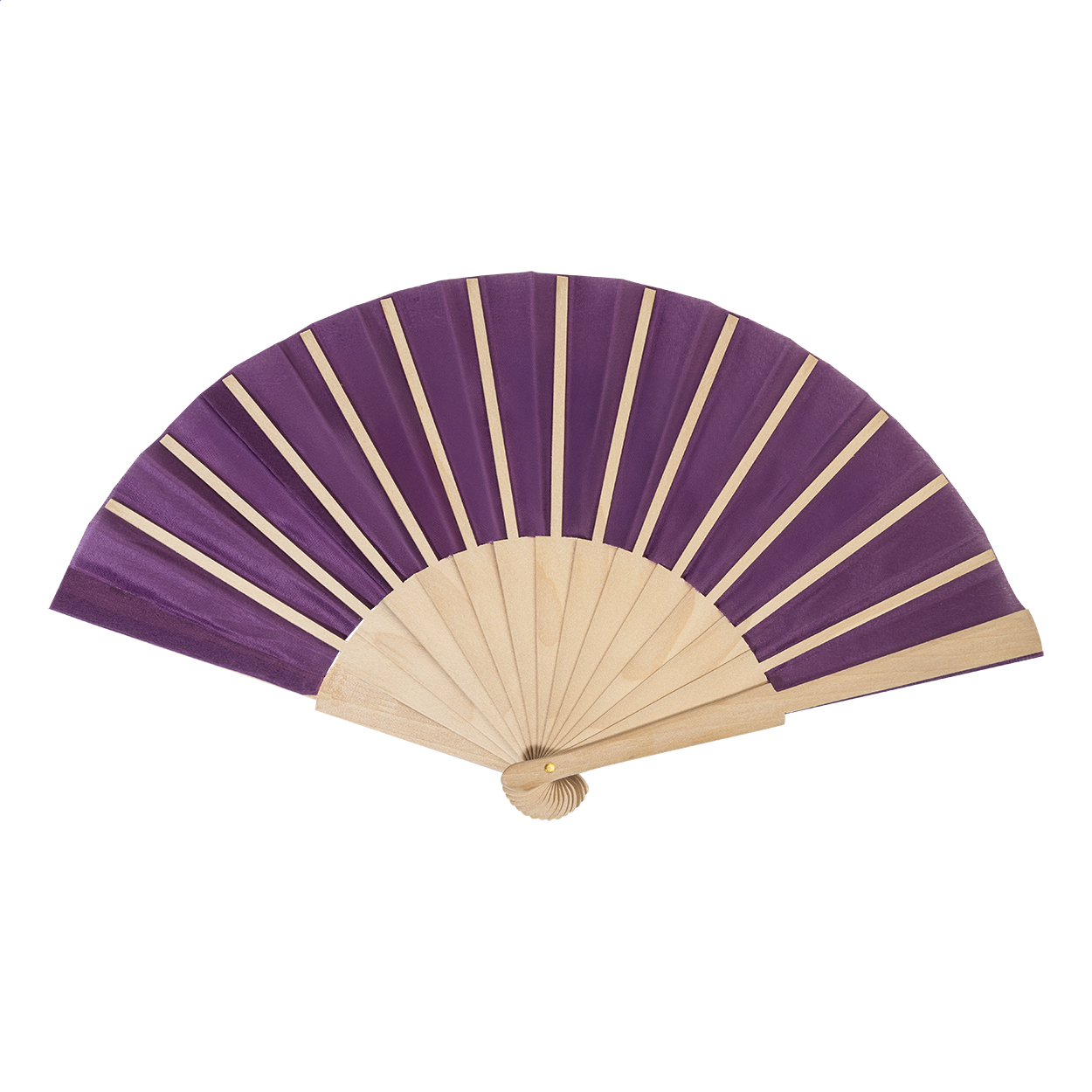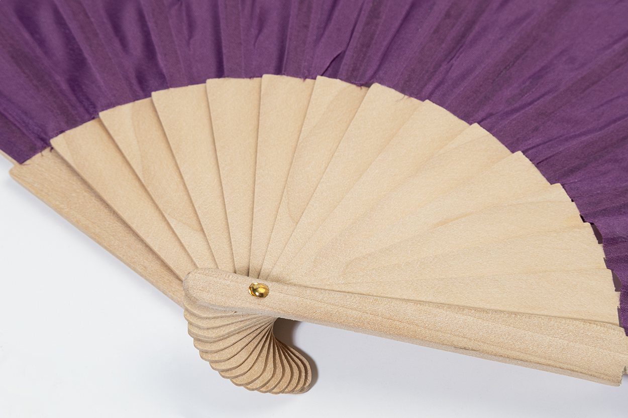 Handfächer aus RPET-Polyester mit Holzspeichen.