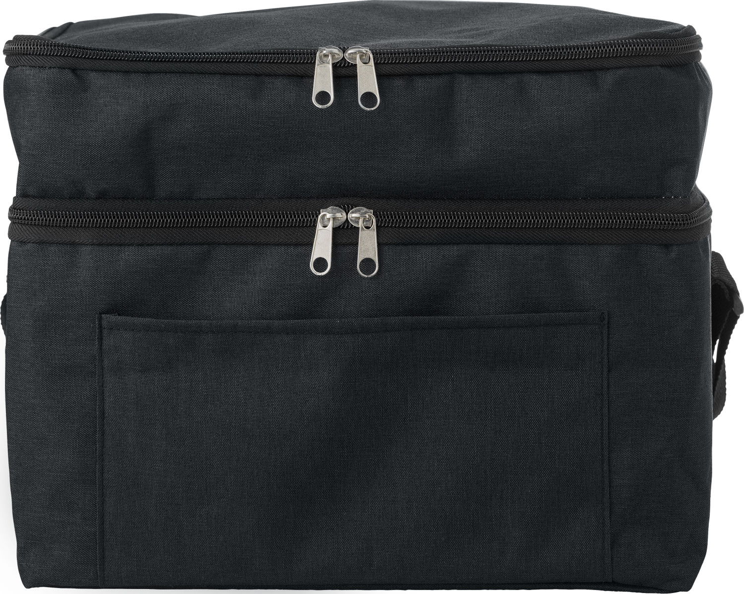 RPET-Kühltasche mit Aluminiumfolie innen. Zwei Fächer mit Reißverschluss. Inklusive Tragegurt.