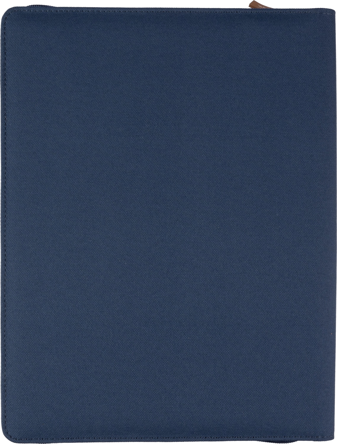 RPET-Mappe (ca. A4) mit PU-Detail und Reißverschluss. Enthält ein Notizbuch mit 20 linierten Seiten (70 g / m²), mehrere Fächer und eine Stiftschlaufe. Kleine Tasche auf der Vorderseite. Einzeln verpackt im braunen Kraftkarton.