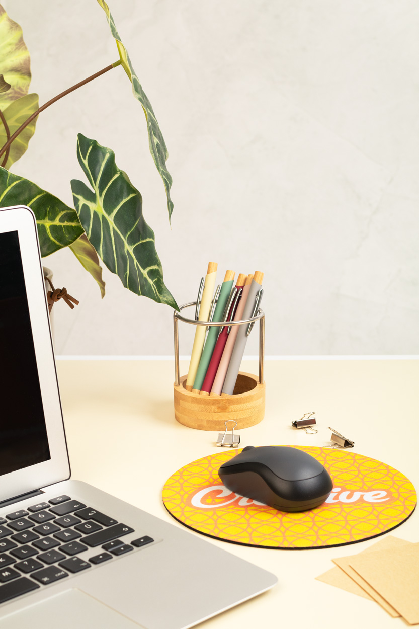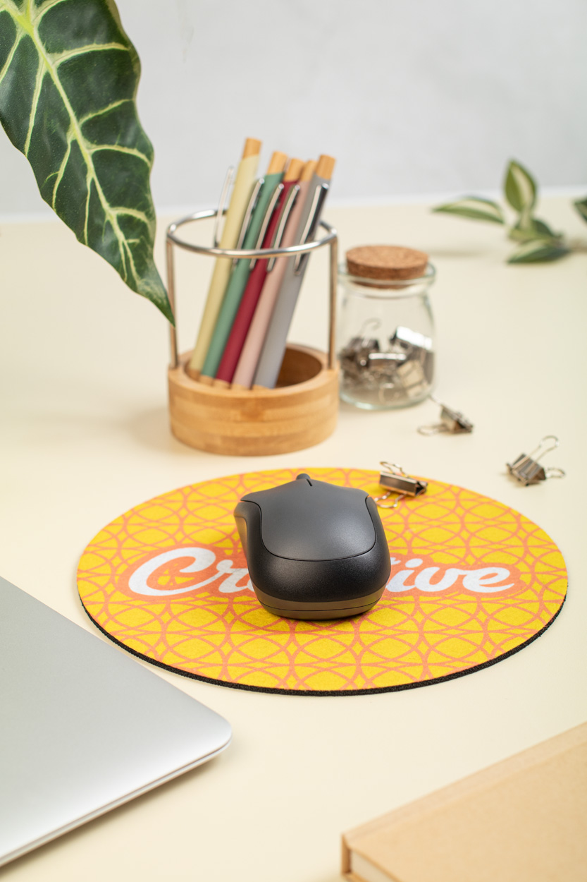 Individuelles rundes Mauspad aus RPET-Filz mit rutschfester Gummiunterseite. Preis inkl. Sublimationsdruck. Mindestmenge: 50 Stück.