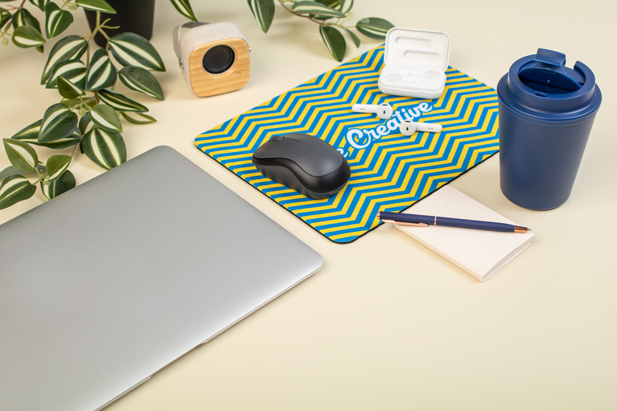 Individuelles Mauspad aus RPET-Filz mit rutschfester Gummiunterseite. Preis inkl. Sublimationsdruck. Mindestmenge: 50 Stück.
